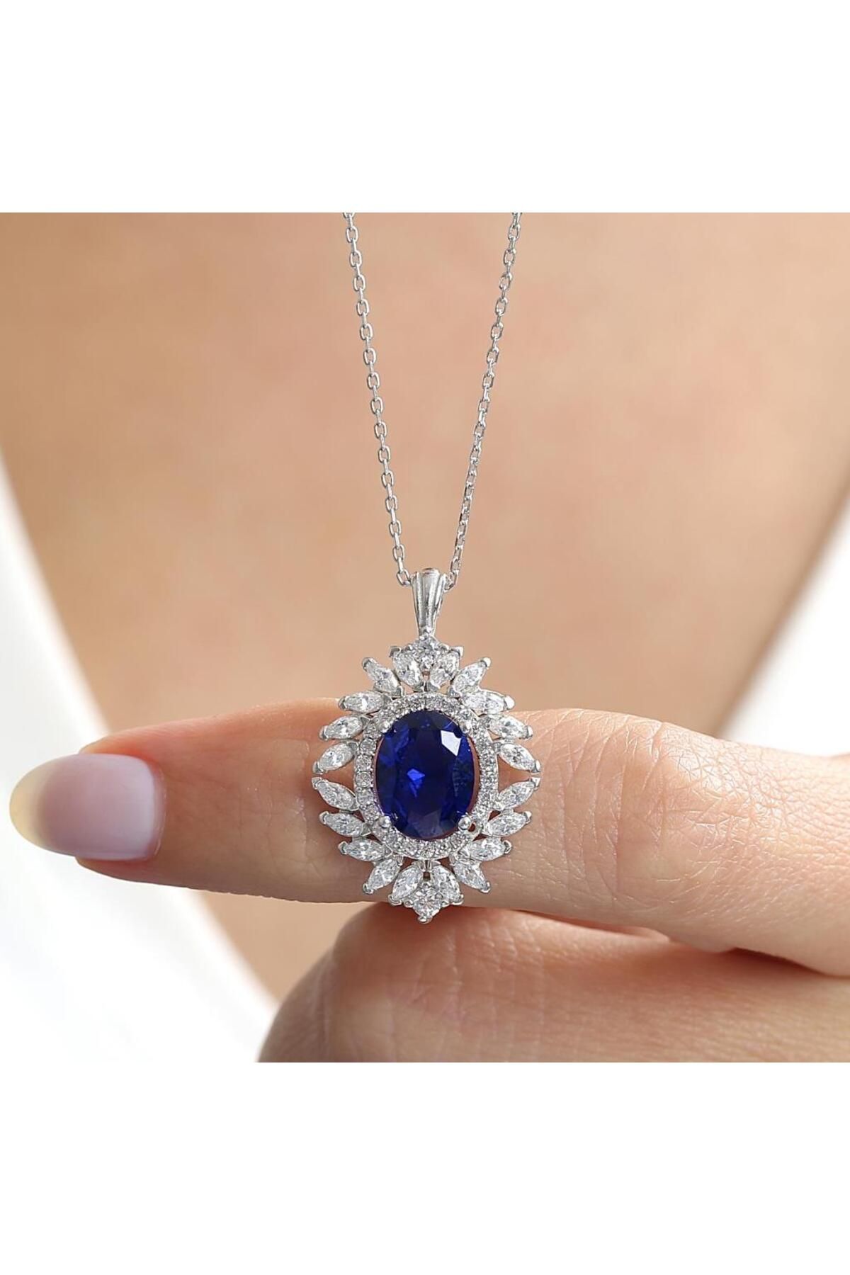 Pırlanta Montür Sentetik Safir Kraliçe Güneşi Gümüş Kolye Pırlanta Montür Sentetik Safir Kraliçe Güneşi Gümüş Kolye KL03343-MLV تک سایز