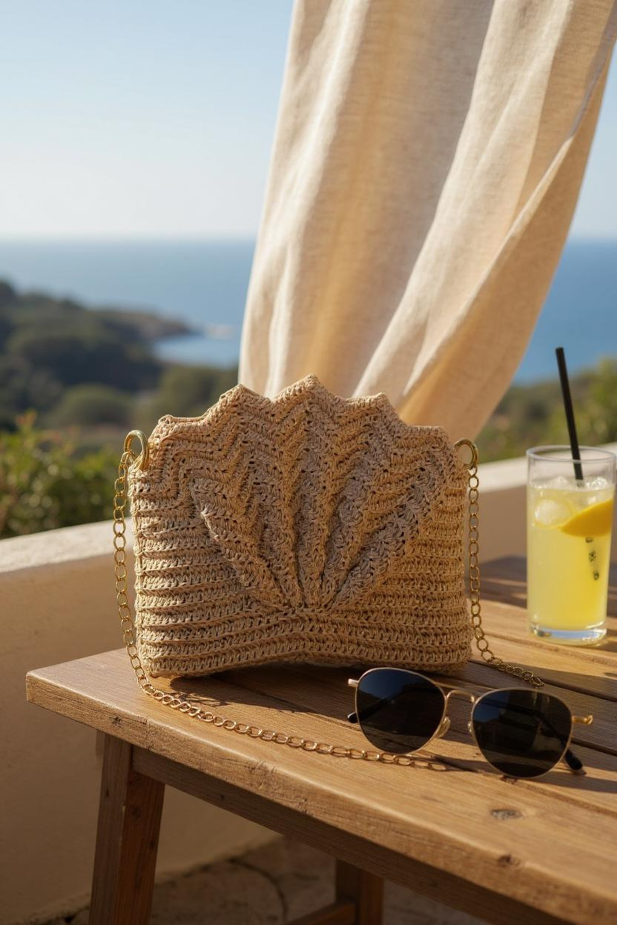 30x25 Hasır Deniz Kabuğu Görünümlü Örgü Çanta 30x25 Hasır Deniz Kabuğu Görünümlü Örgü Çanta 123deniz Standart