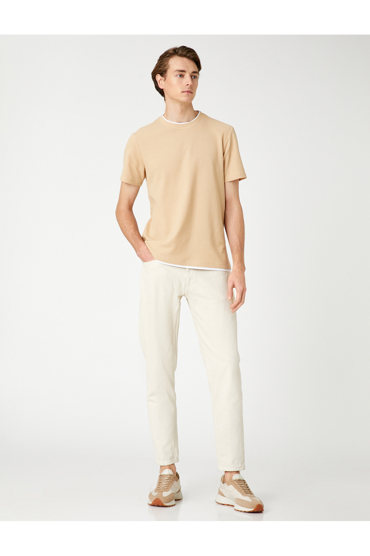 Basic Dokuma Tişört Bisiklet Yaka Kısa Kollu Dar Kesim Basic Dokuma Tişört Bisiklet Yaka Kısa Kollu Dar Kesim 3SAM10070HK 2XL