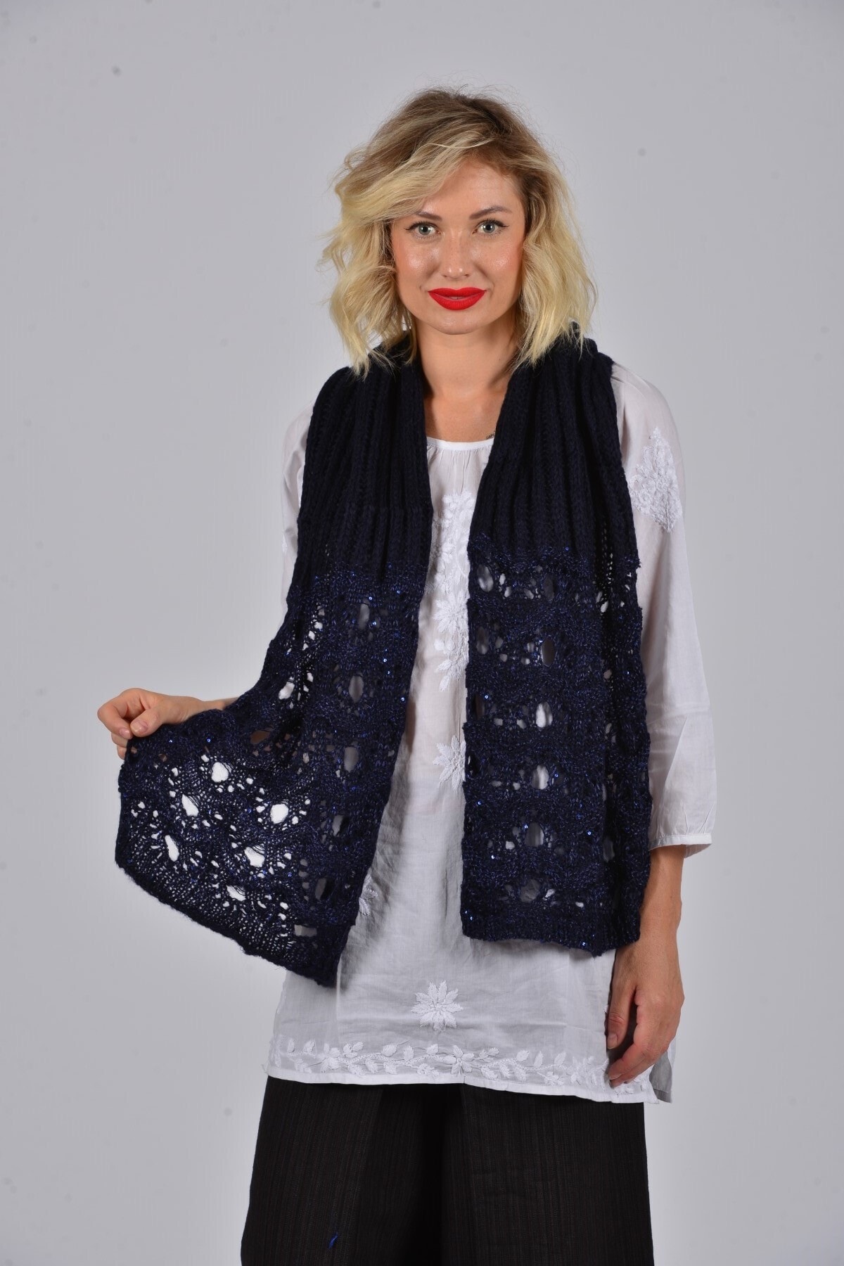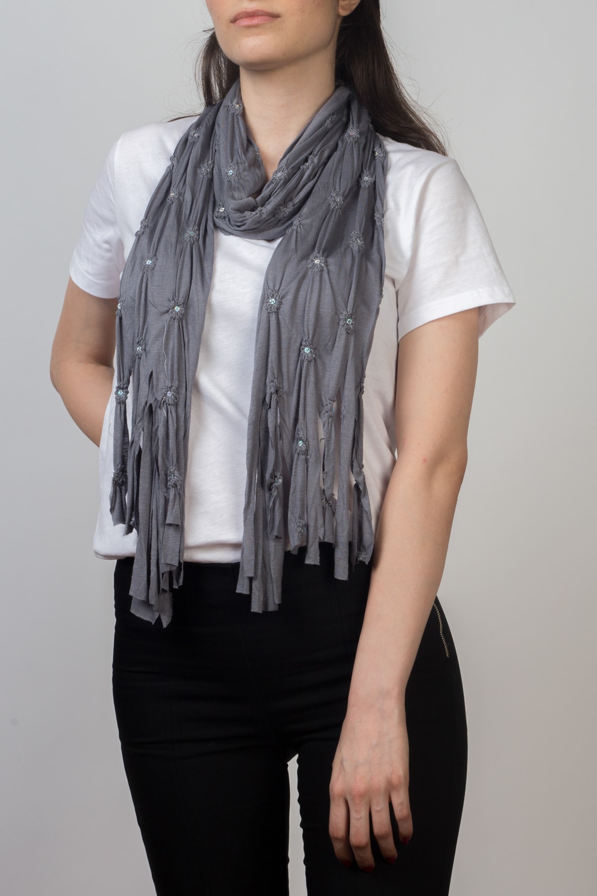 Kadın Gri Gri Pullu Şal Kadın Gri Gri Pullu Şal GEZ477 تک سایز