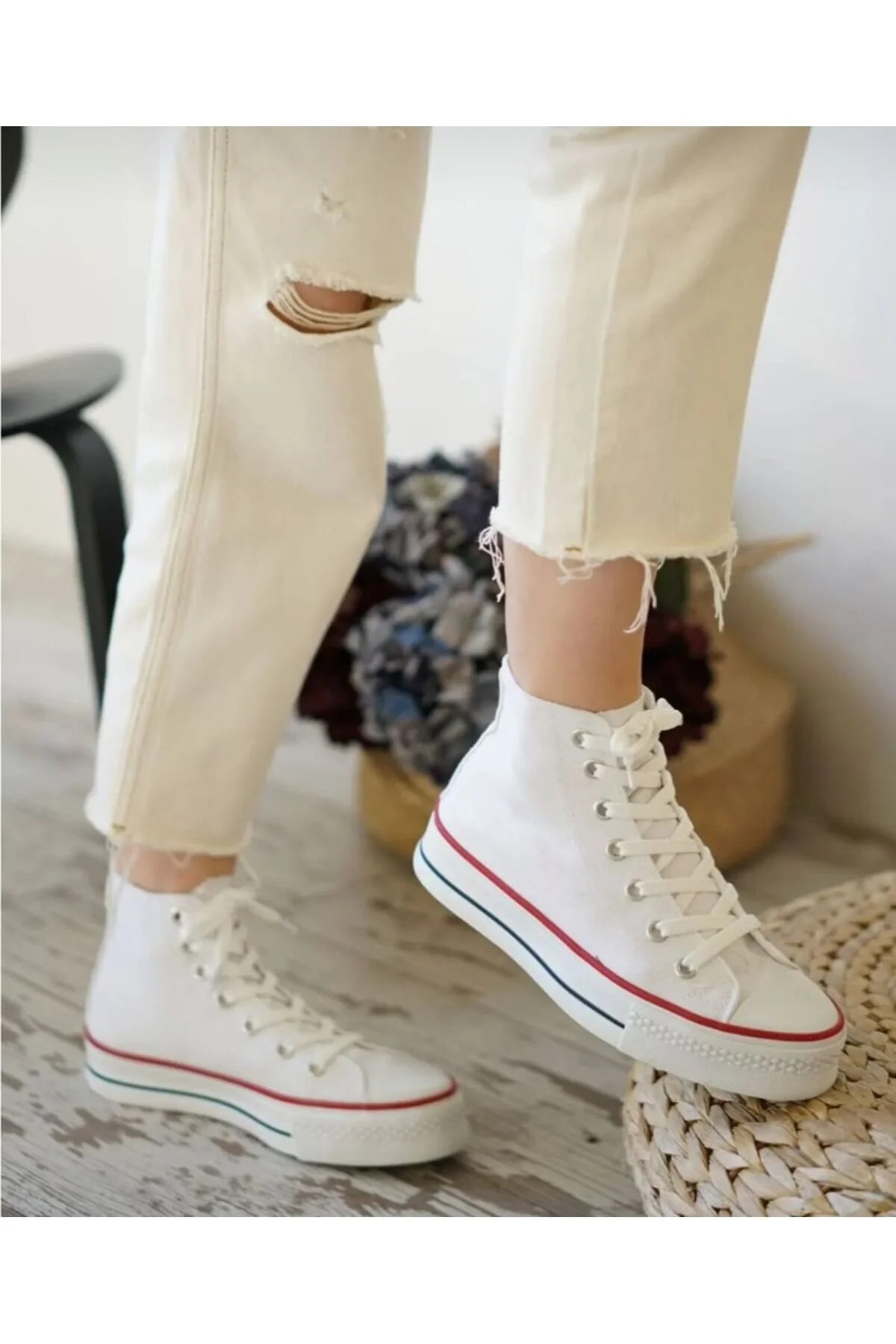 Unisex Kısa Beyaz Keten Sneaker Unisex Kısa Beyaz Keten Sneaker İM1-1 44