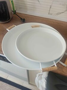 2'li Ahşap Kulplu 45 Cm Beyaz Tepsi Ve 37 Cm Beyaz Tepsi Çay Kahve Sunum Tepsisi 2'li Ahşap Kulplu 45 Cm Beyaz Tepsi Ve 37 Cm Beyaz Tepsi Çay Kahve Sunum Tepsisi 37ve45cm تک سایز