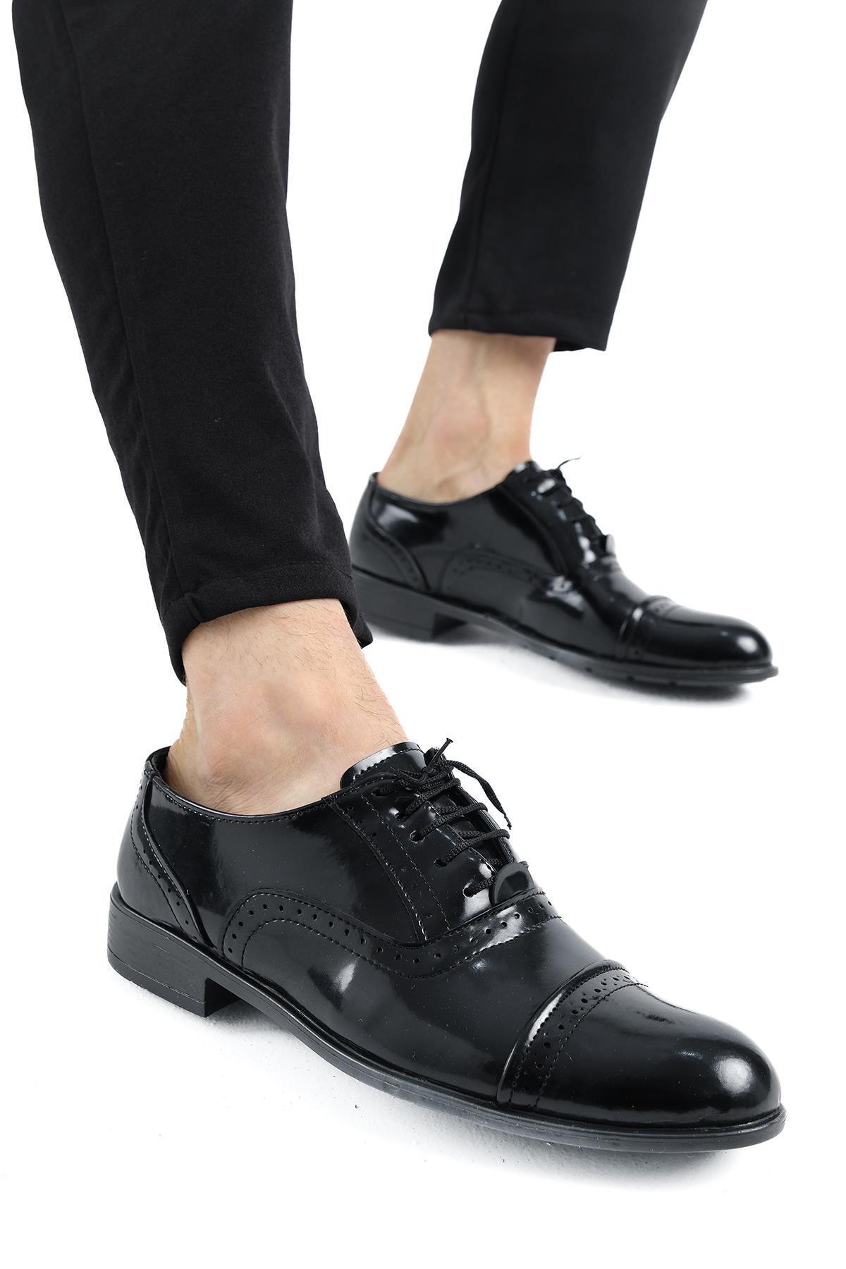 Siyah Bağlı Deri Erkek Klasik Kundura Ayakkabı Siyah Bağlı Deri Erkek Klasik Kundura Ayakkabı 000708