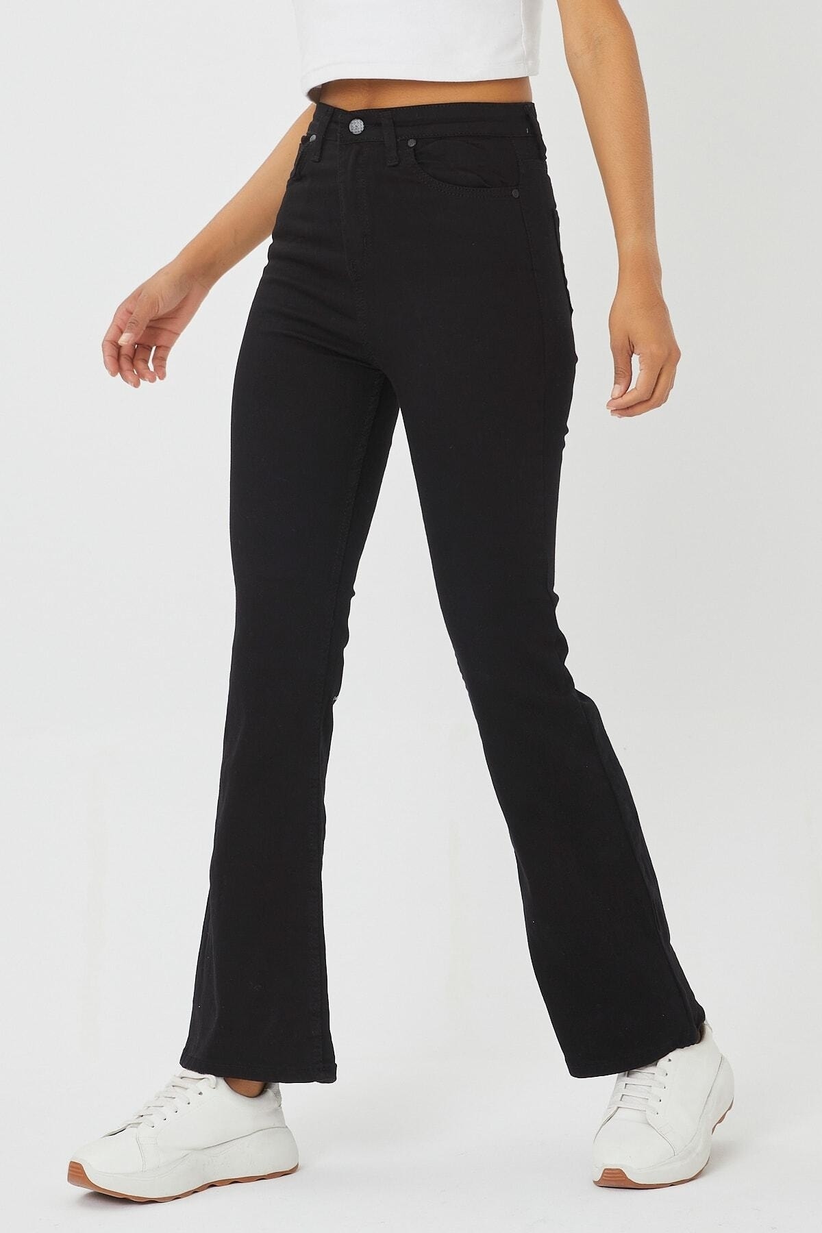 Siyah Ispanyol Yüksek Bel Solmaz Pantolon Jean Siyah Ispanyol Yüksek Bel Solmaz Pantolon Jean HRMNY200621ESPN 36