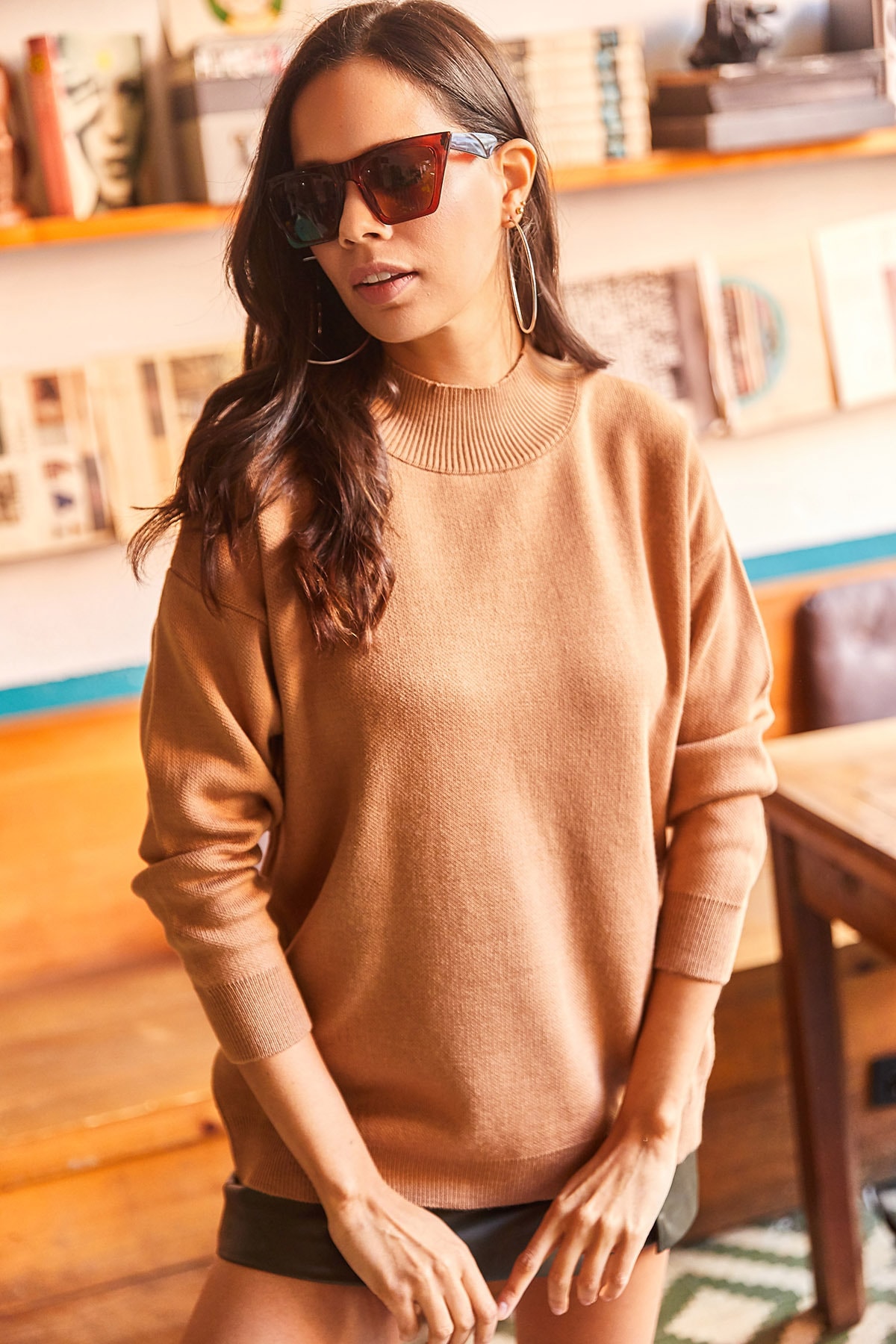 Kadın Kırmızı Balıkçı Yaka Yumuşak Dokulu Salaş Triko Kazak KZK-19000531 Kadın Kırmızı Balıkçı Yaka Yumuşak Dokulu Salaş Triko Kazak KZK-19000531 Standart