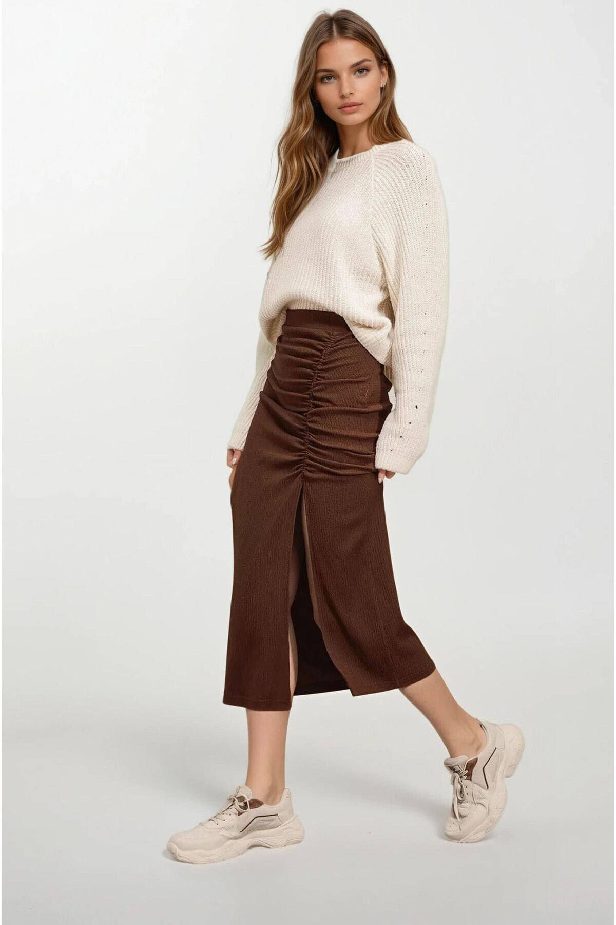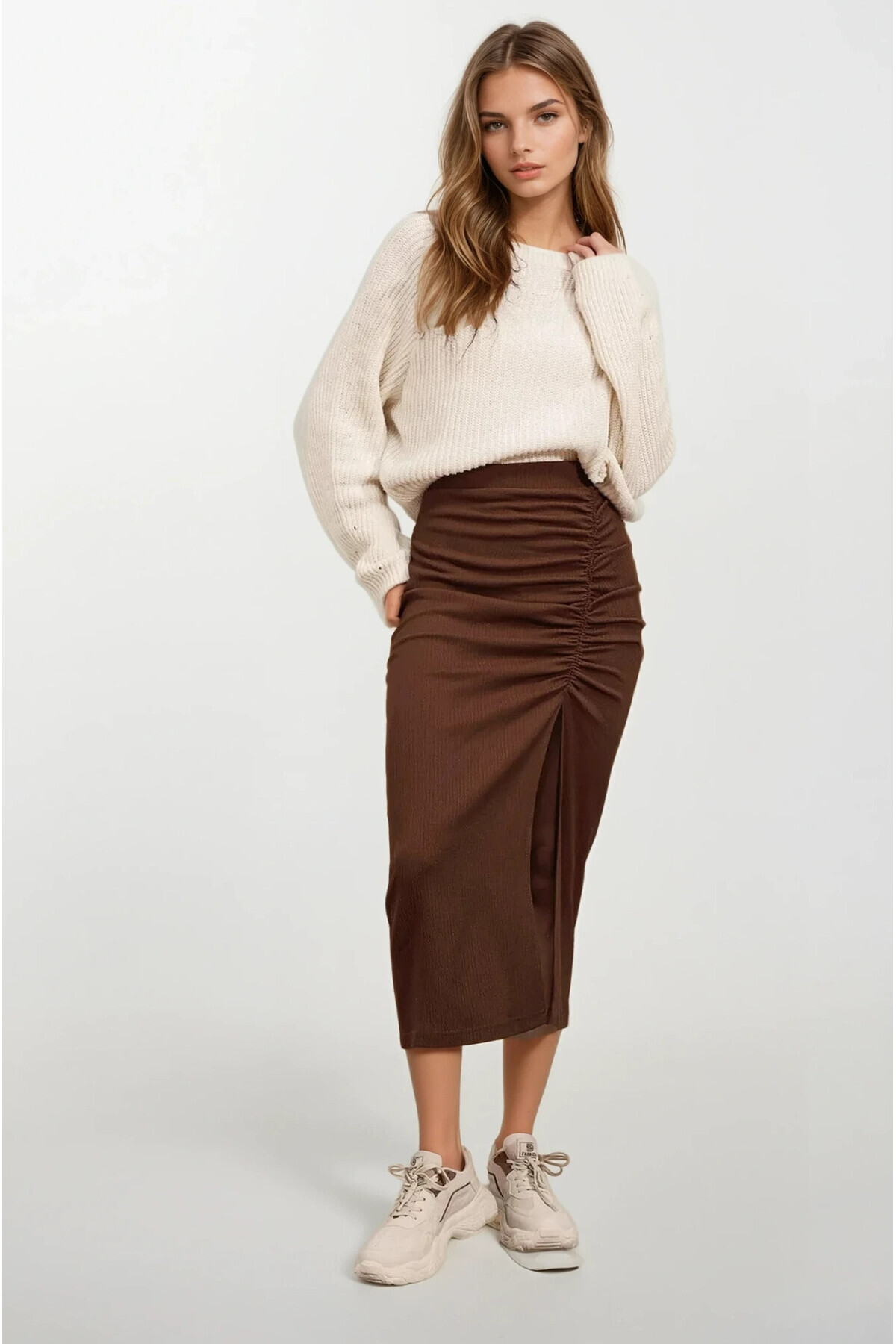Kadın Kahverengi Beli Lastikli Yırtmaçlı Uzun Etek HZL22S-BD118801 Kadın Kahverengi Beli Lastikli Yırtmaçlı Uzun Etek HZL22S-BD118801 42