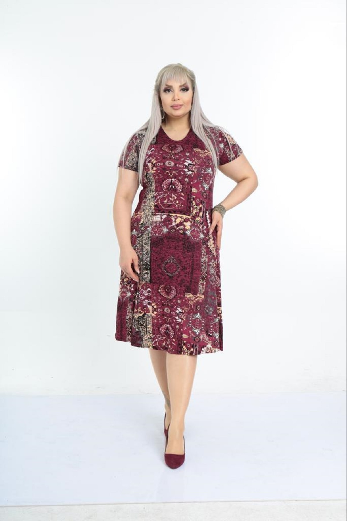 Kadın Kırmızı Etnik Desenli Büyük Beden Elbise Kadın Kırmızı Etnik Desenli Büyük Beden Elbise 1596 54-56