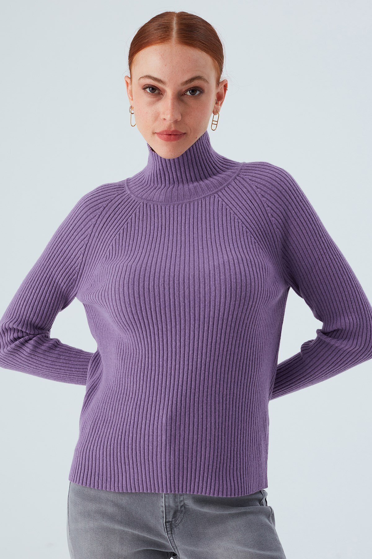 Fit Kalıp Balıkçı Yaka Kaşmir Karışım Kadın Triko Kazak - Koyu Lila Fit Kalıp Balıkçı Yaka Kaşmir Karışım Kadın Triko Kazak - Koyu Lila 12302017 XL