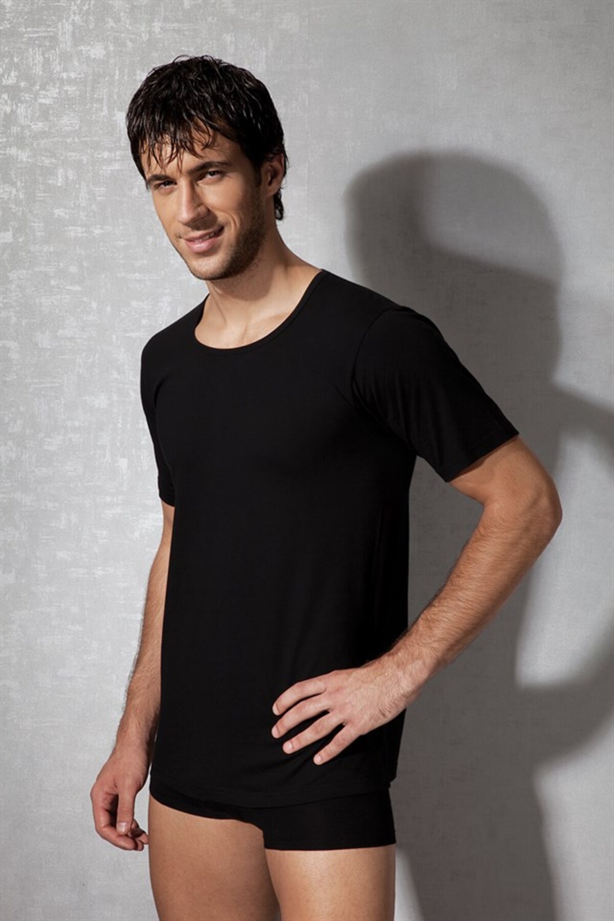Micro Modal Nefes Alan Kısa Kol Düğmeli Erkek Siyah T-shirt Micro Modal Nefes Alan Kısa Kol Düğmeli Erkek Siyah T-shirt DORA2565 2XL