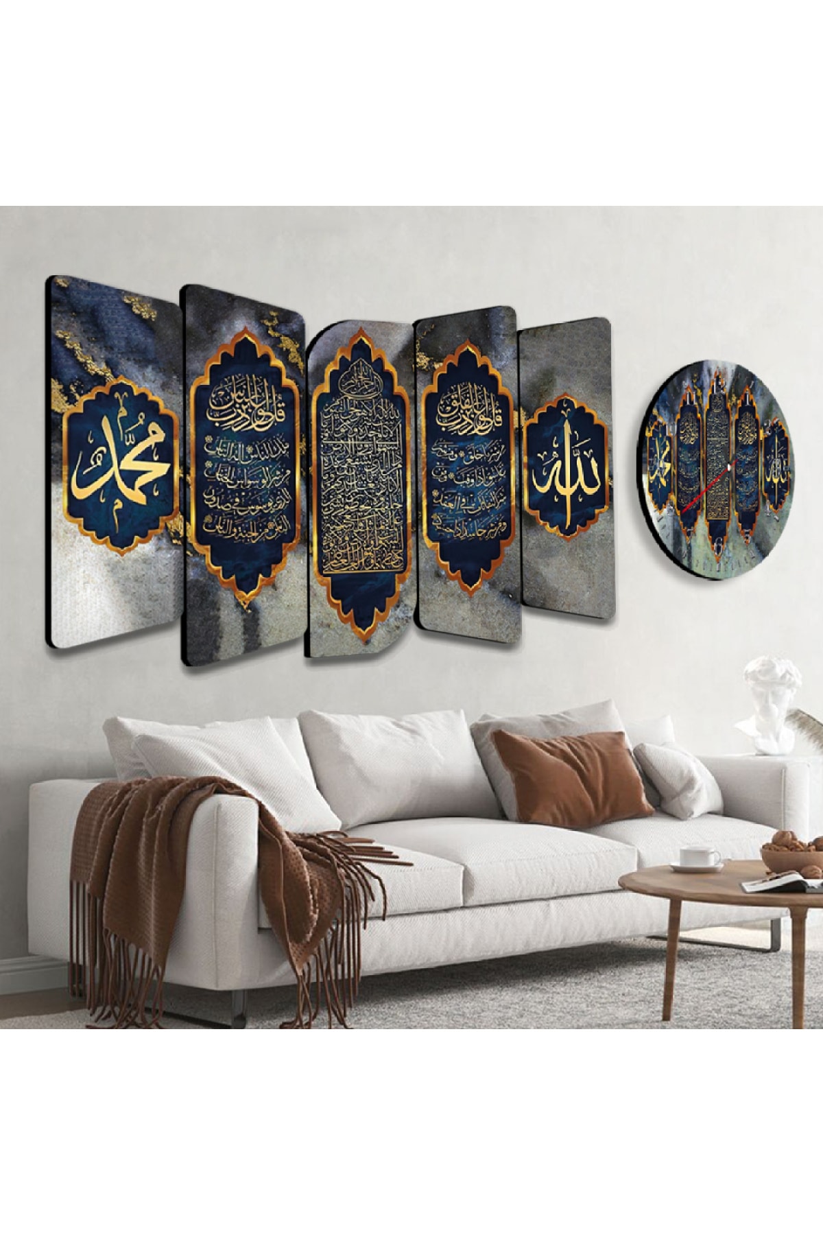 Altılı Oval Mdf Mavi Arka Planlı Altın Allah Hz Muhammed Lafzı Ve Dini Ayetler Saatli Tablo Seti Altılı Oval Mdf Mavi Arka Planlı Altın Allah Hz Muhammed Lafzı Ve Dini Ayetler Saatli Tablo Seti 6MKSTS1674 95 x 55