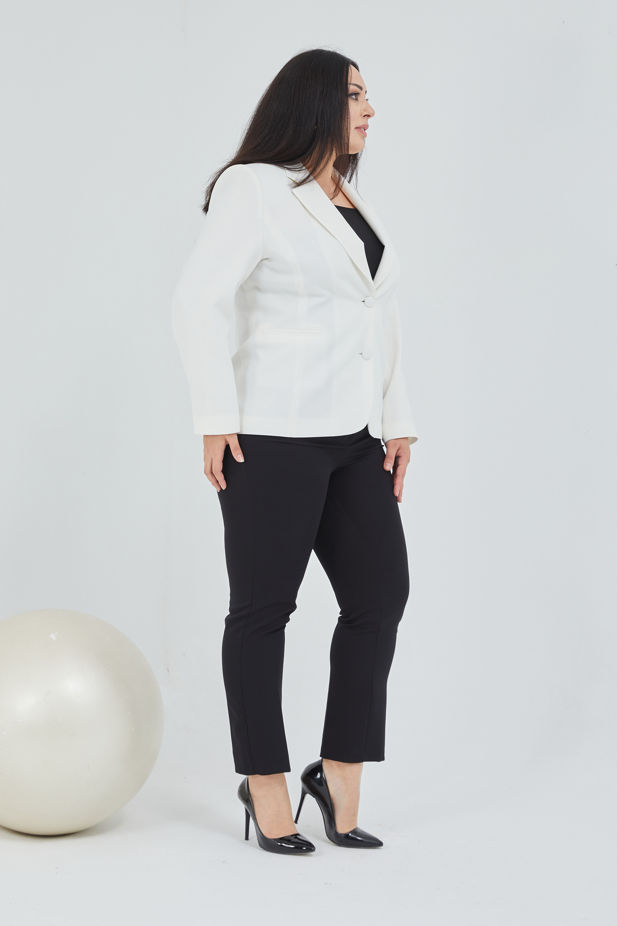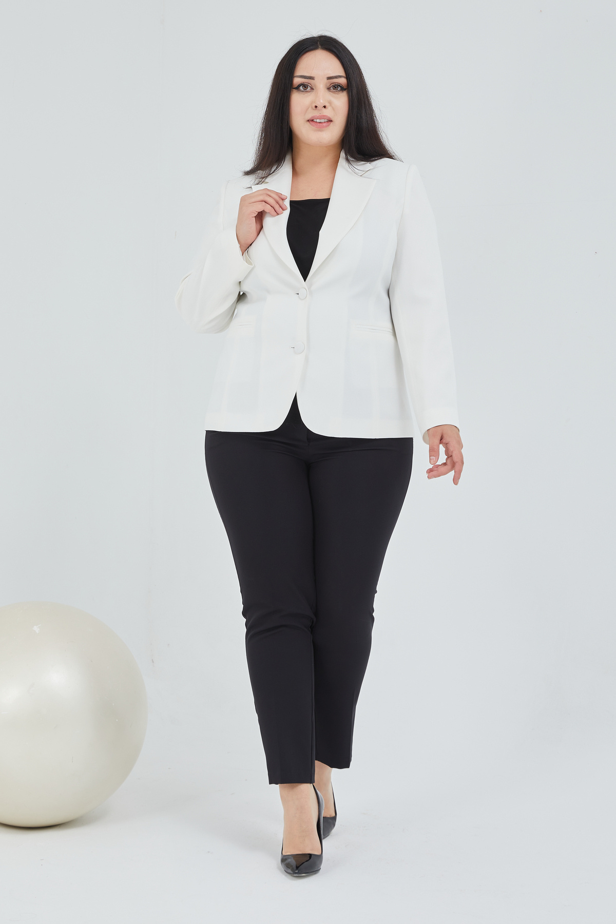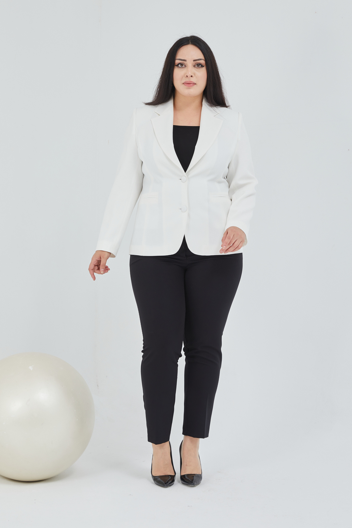 Kadın Büyük Beden Düğmeli Klasik Beyaz Ceket Kadın Büyük Beden Düğmeli Klasik Beyaz Ceket 01A 54