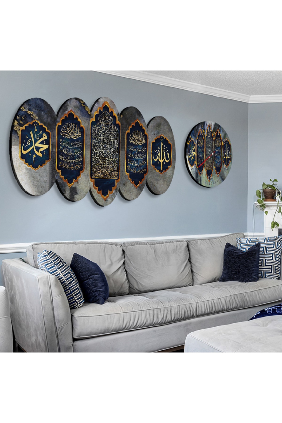 Altılı Oval Mdf Siyah Allah Hz Muhammed Lafzı Ve Besmele Dini Saatli Tablo Seti Altılı Oval Mdf Siyah Allah Hz Muhammed Lafzı Ve Besmele Dini Saatli Tablo Seti 6MDTST10631047 95 x 55