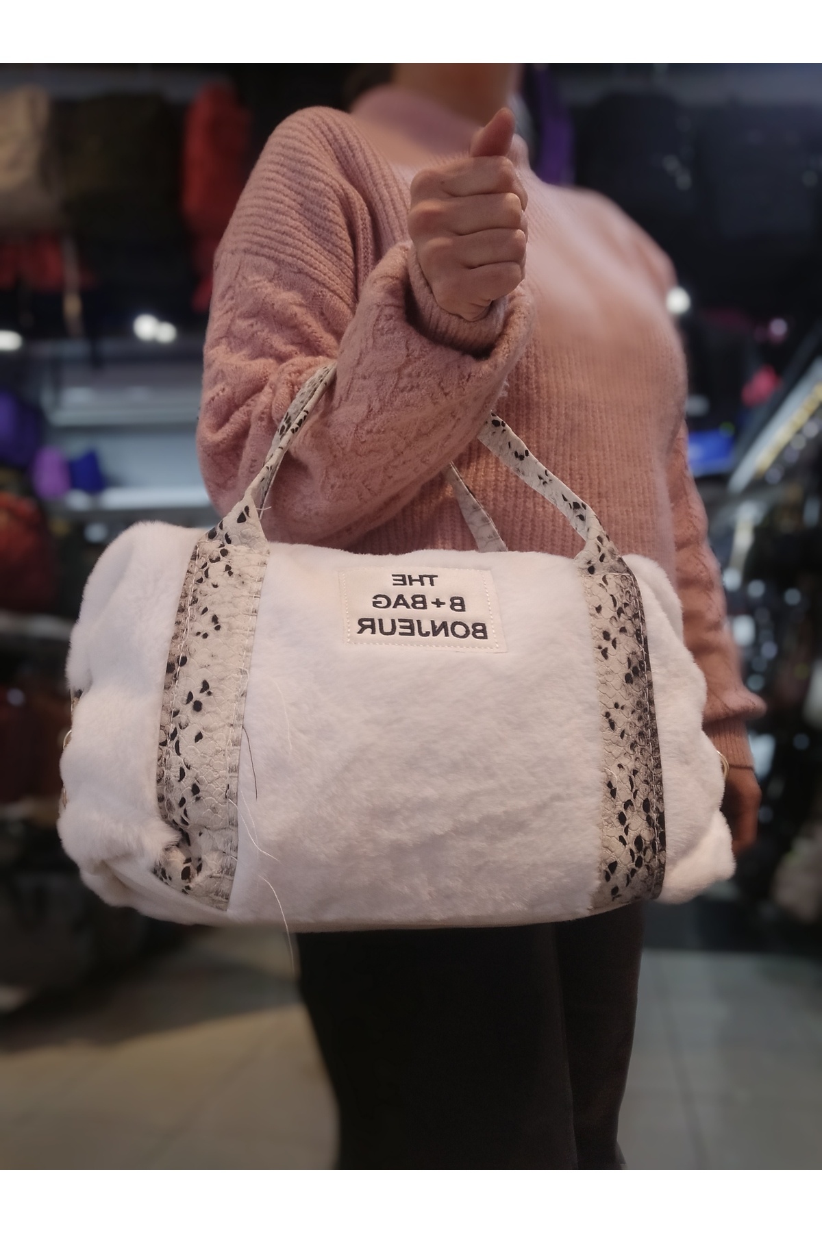 Peluş Kumaşlı Büyük Omuz Çantası Peluş Kumaşlı Büyük Omuz Çantası BÜYMAX01 تک سایز