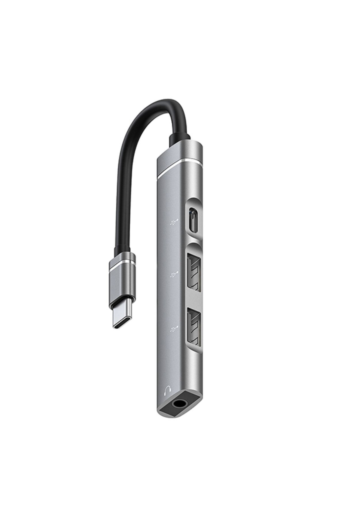 4in1 Type-c+3.5mm+usb Girişli Çoğaltıcı Adaptör Çevirici Hub Gri 4in1 Type-c+3.5mm+usb Girişli Çoğaltıcı Adaptör Çevirici Hub Gri 35761 تک سایز