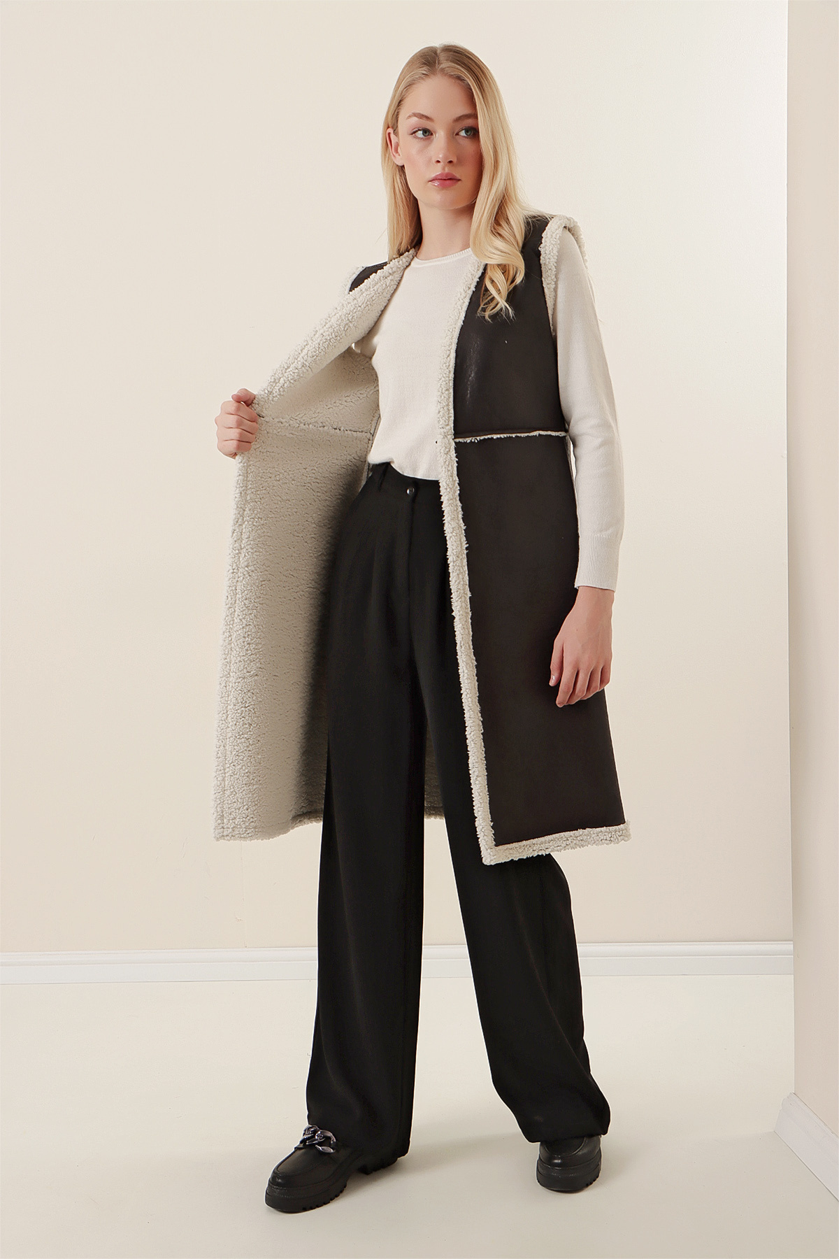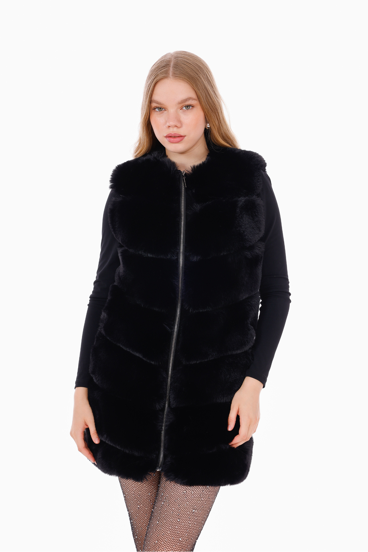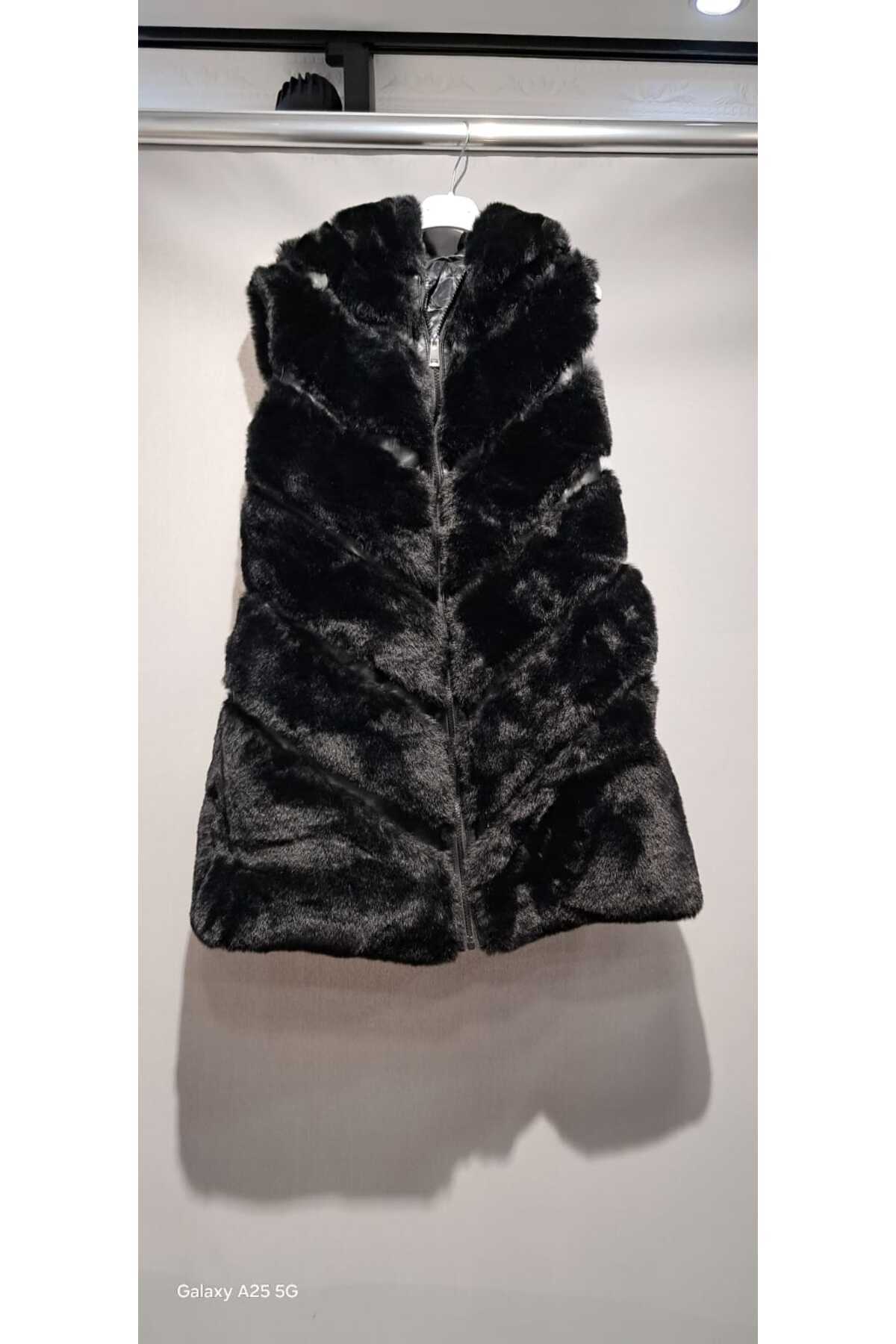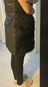 Kadın Siyah Arkası Deri Detaylı Cepli Uzun Suni Kürk Yelek Kadın Siyah Arkası Deri Detaylı Cepli Uzun Suni Kürk Yelek YKDY01 42
