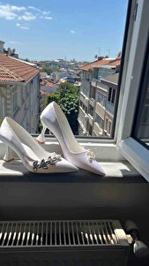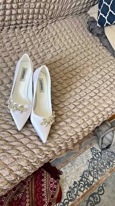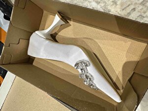 El Işleme Taşlı Kadın Ayakkabı Beyaz Stiletto El Işleme Taşlı Kadın Ayakkabı Beyaz Stiletto İşlemeTaşlı 41