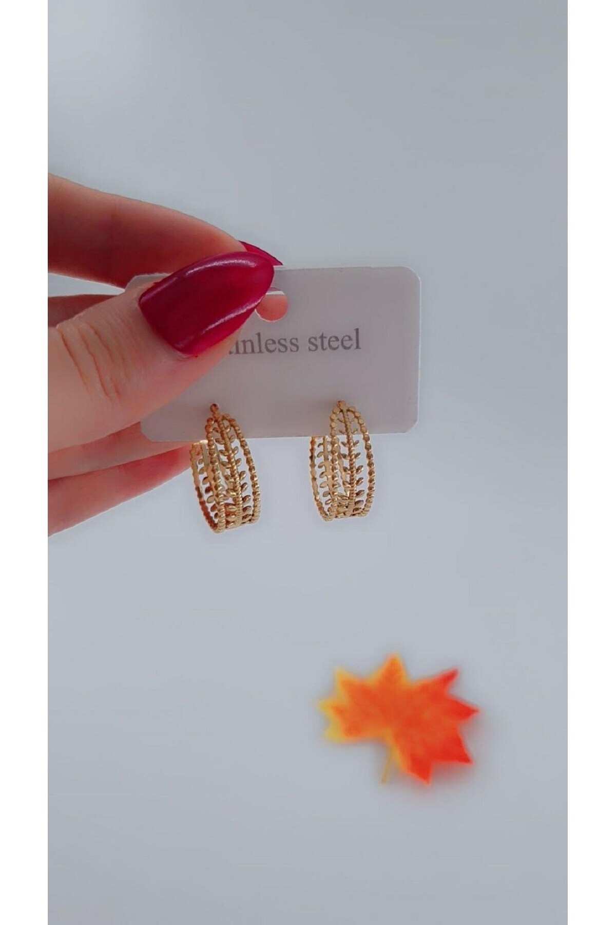 Kadın Yaprak Altın Kaplama Çelik Küpe Gold Renk Simli Kadın Yaprak Altın Kaplama Çelik Küpe Gold Renk Simli PRA-8012268-1728 0.30 mm