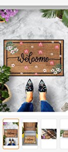 Dekoratif Kapı Önü Paspası Welcome Pembe Çiçek Dekoratif Kapı Önü Paspası Welcome Pembe Çiçek KOP-277 تک سایز