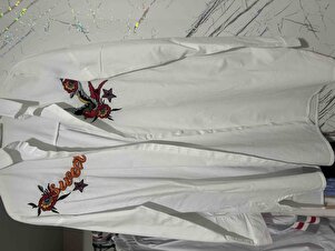 Kadın Beyaz Katlanır Kol Kuş Ve Çiçek Nakış Işlemeli Oversize Pamuk Gömlek Kadın Beyaz Katlanır Kol Kuş Ve Çiçek Nakış Işlemeli Oversize Pamuk Gömlek 3555pts L