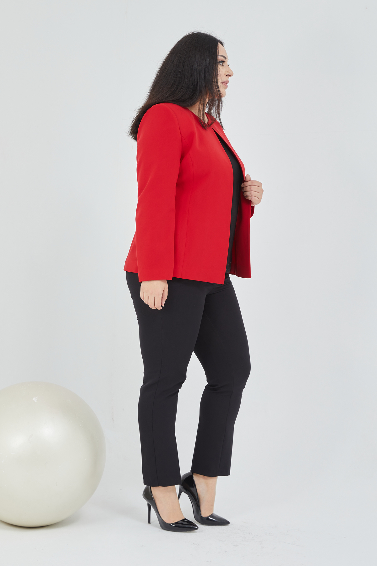 Kadın Büyük Beden Yakasız Ceket Kadın Büyük Beden Yakasız Ceket 01B 54