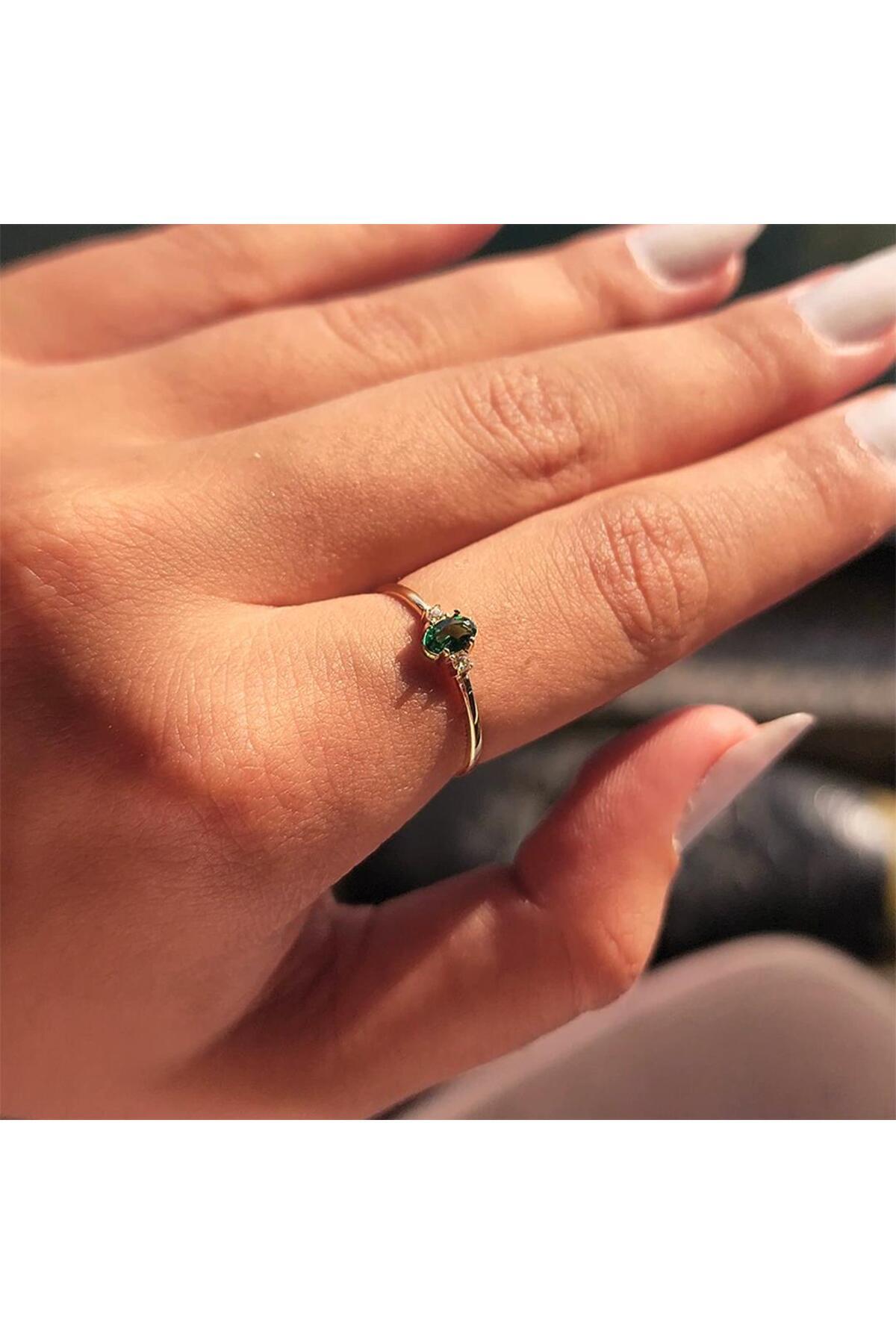 Tria Altın Yüzük - 14 Ayar Altın 0.30 Karat Oval Zümrüt Yeşili Taşlı Tria Evlilik Teklifi Yüzüğü Tria Altın Yüzük - 14 Ayar Altın 0.30 Karat Oval Zümrüt Yeşili Taşlı Tria Evlilik Teklifi Yüzüğü HNKYUZ2602 6