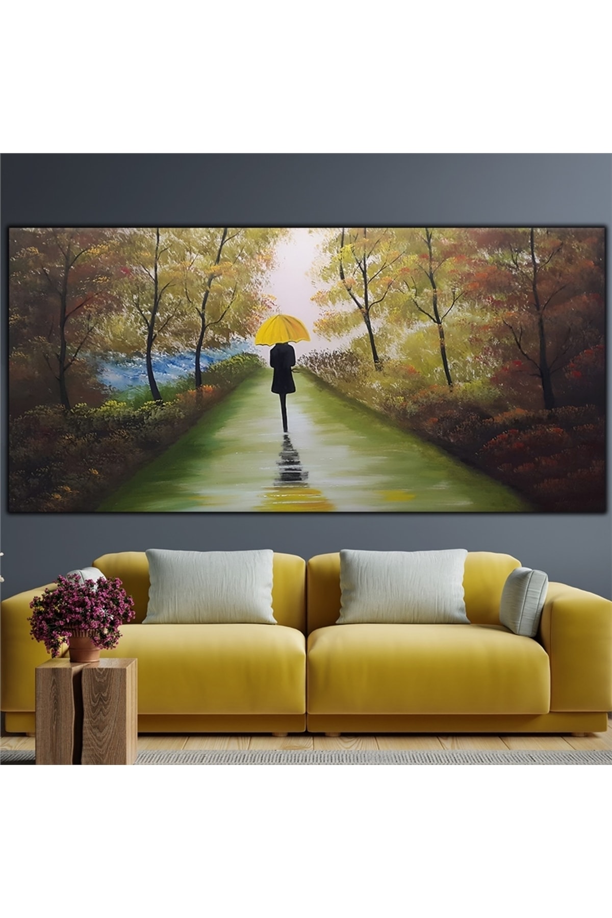 Sarı Şemsiyeli Kadın Orijinal Yağlı Boya Tablo Sarı Şemsiyeli Kadın Orijinal Yağlı Boya Tablo TD821 50 x 100