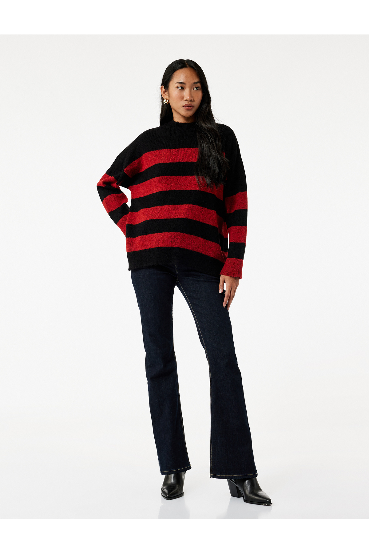 Kadın Kırmızı Çizgili Kazak 3WAL90234HT Kadın Kırmızı Çizgili Kazak 3WAL90234HT L