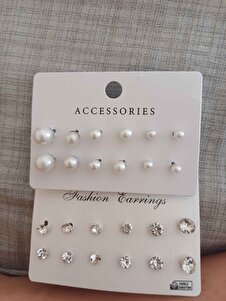 Kadın 24'lü Zirkon Taş Ve Inci Küpe Seti Kadın 24'lü Zirkon Taş Ve Inci Küpe Seti TK0552 تک سایز