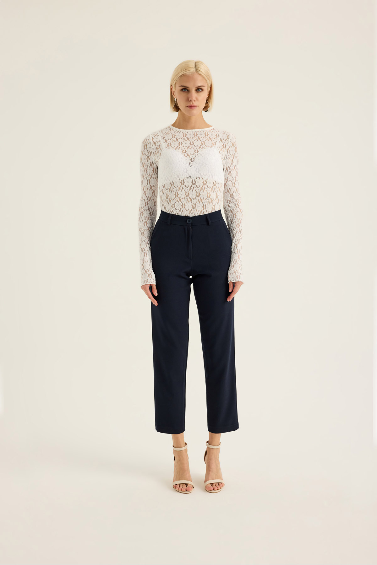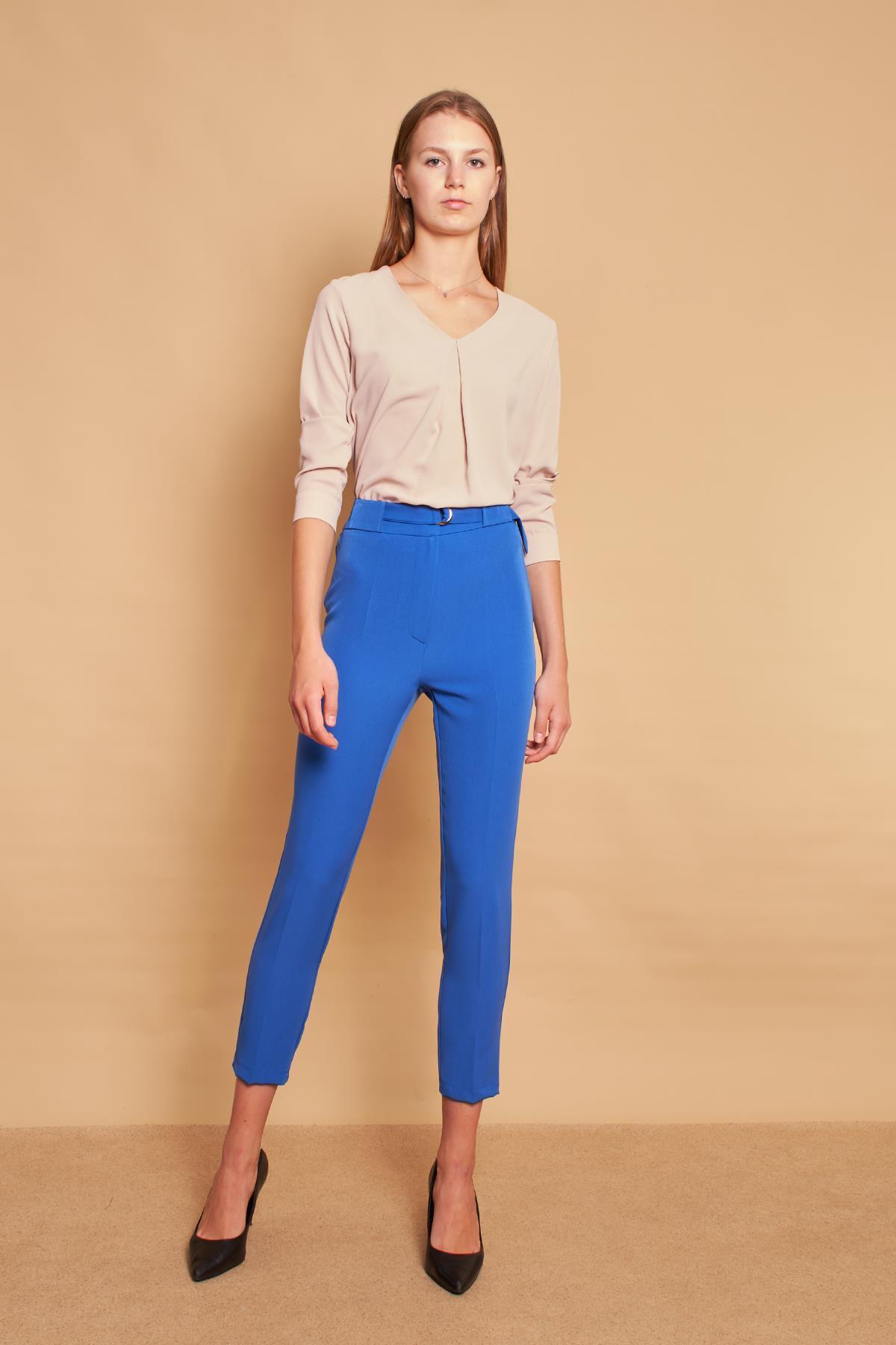 Kalın Kemerli D Tokalı Likralı Bilek Boy Kumaş Pantolon-Sax Kalın Kemerli D Tokalı Likralı Bilek Boy Kumaş Pantolon-Sax 3939 44