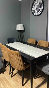 Püsküllü Keten Runner & Amerikan Servis Püsküllü Keten Runner & Amerikan Servis PÜSKÜLLÜ KETEN RUNNER تک سایز