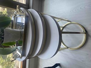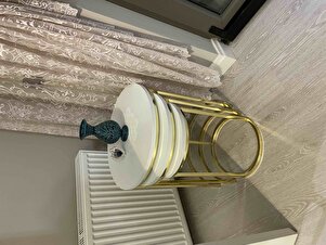 3'lü Parlak Gold Ayak Beyaz Tabla Zigon Servis Salon Sehpa 3'lü Parlak Gold Ayak Beyaz Tabla Zigon Servis Salon Sehpa new1 تک سایز