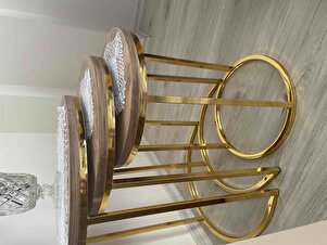 3'lü Parlak Gold Ayak Antik Çam Tabla Zigon Servis Salon Sehpa 3'lü Parlak Gold Ayak Antik Çam Tabla Zigon Servis Salon Sehpa new1 تک سایز