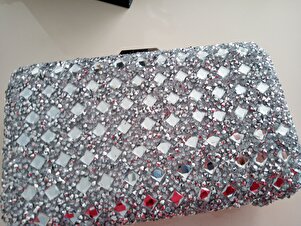 Kadın Taşlı Gümüş Abiye Çantası Kadın Taşlı Gümüş Abiye Çantası RZ-00000128 تک سایز