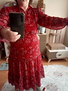 Kadın Kemerli Yakası Bağlama Detaylı Desenli Şifon Elbise Btr02 Kadın Kemerli Yakası Bağlama Detaylı Desenli Şifon Elbise Btr02 BTR02 XL