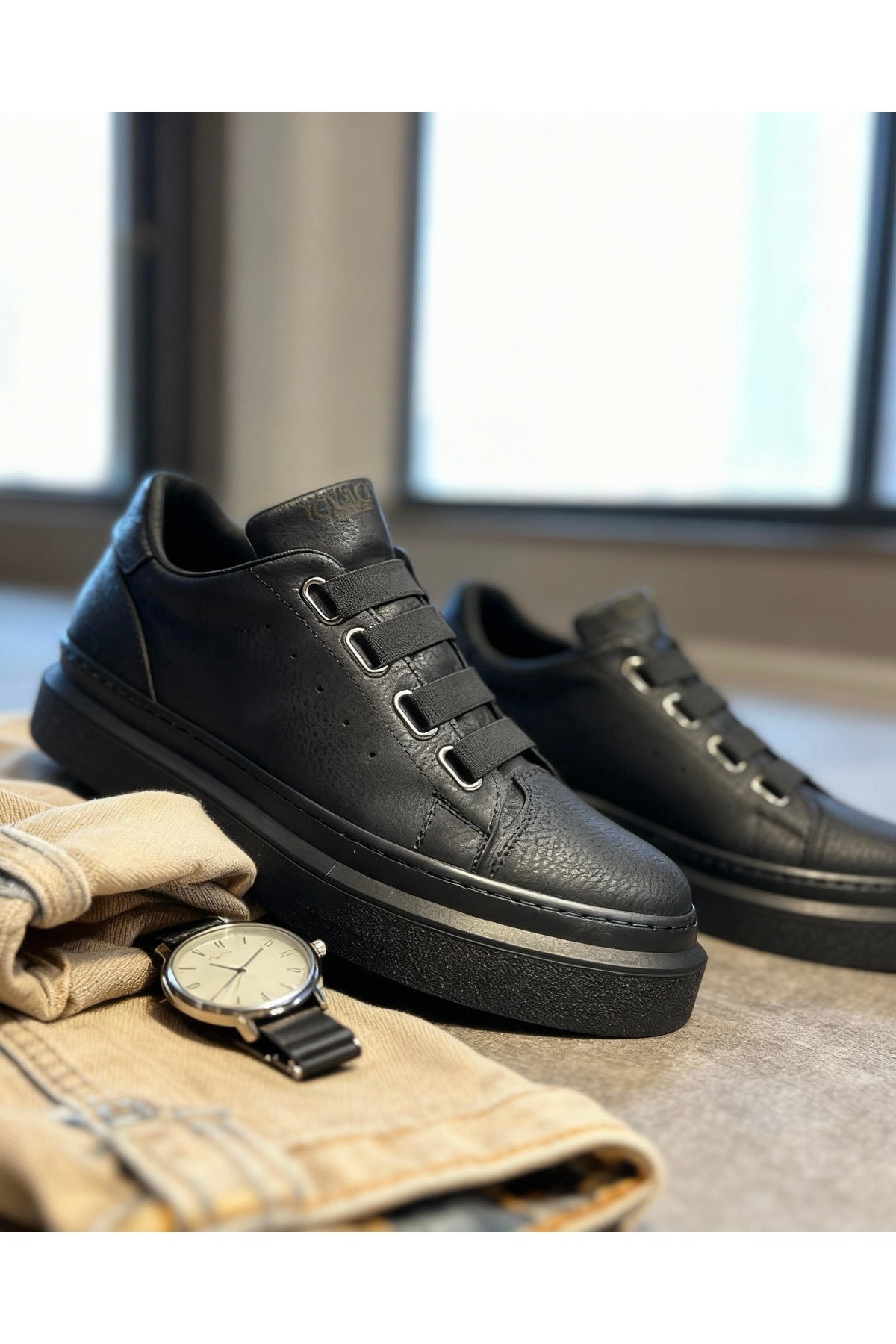 Yüksek Taban Günlük Ayakkabı 044 KAPİTONE Siyah (Beyaz Taban) Yüksek Taban Günlük Ayakkabı 044 KAPİTONE Siyah (Beyaz Taban) KNKKPT044SBT 44