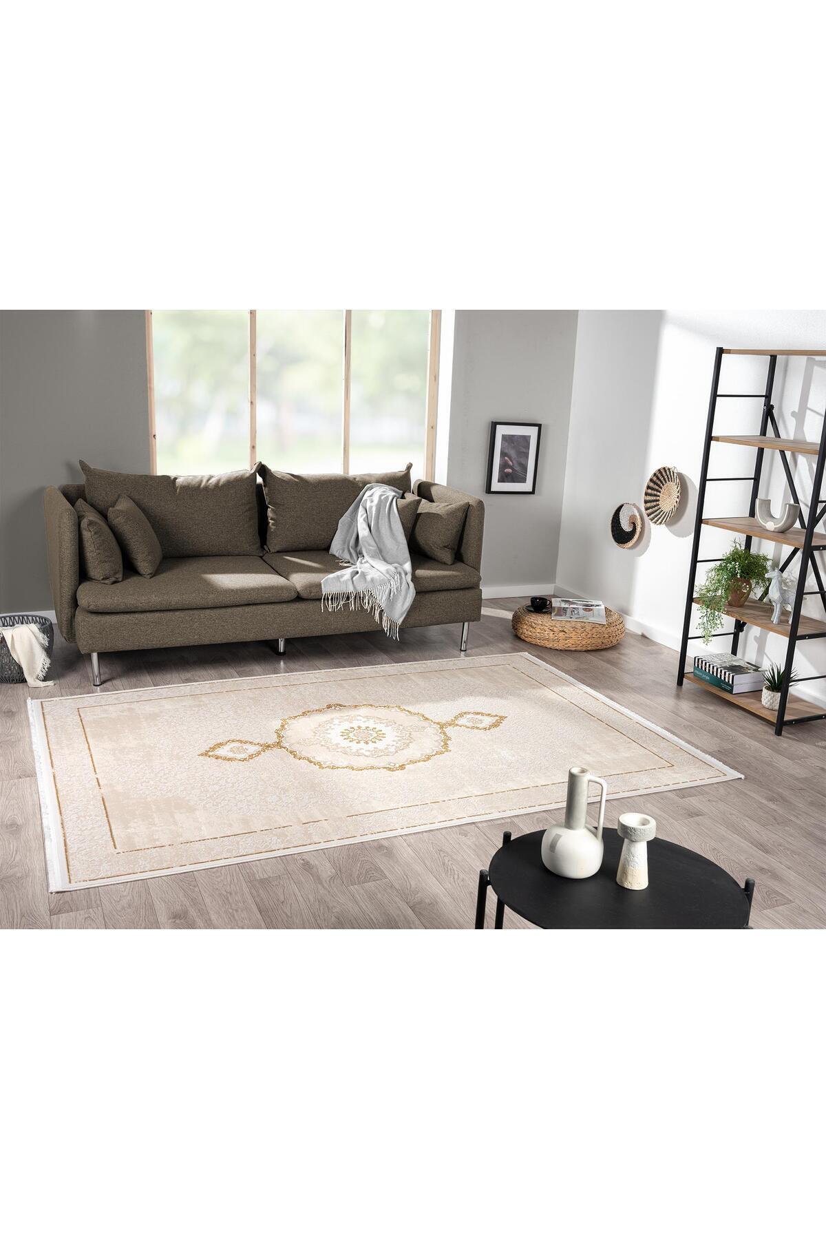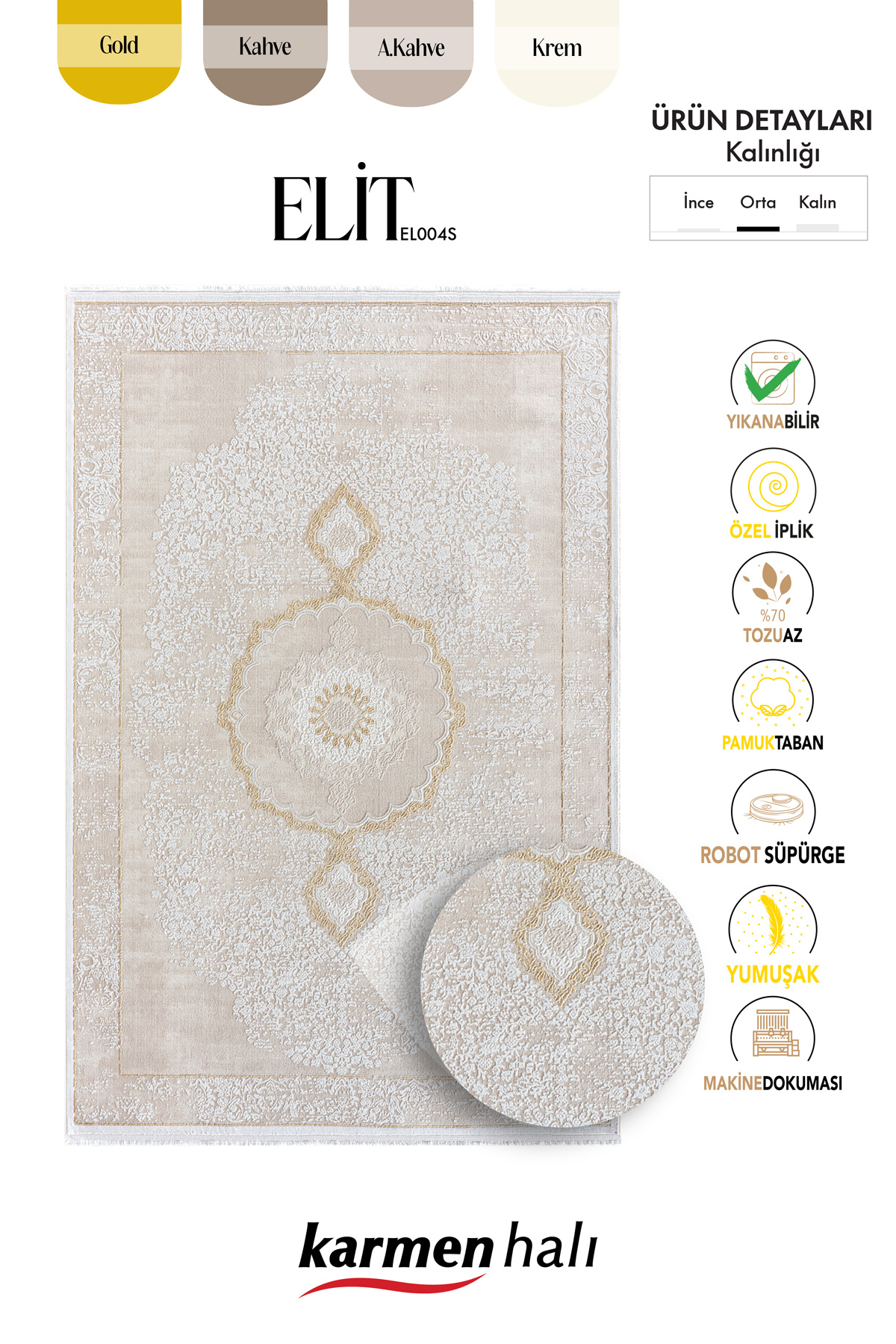 Elit El004s Krem Halı Gold Detaylı Göbekli Kenar Çerçeveli Ince Yumuşak Akrilik Tozuaz Modern Salon Elit El004s Krem Halı Gold Detaylı Göbekli Kenar Çerçeveli Ince Yumuşak Akrilik Tozuaz Modern Salon EL004S176 228 x 340