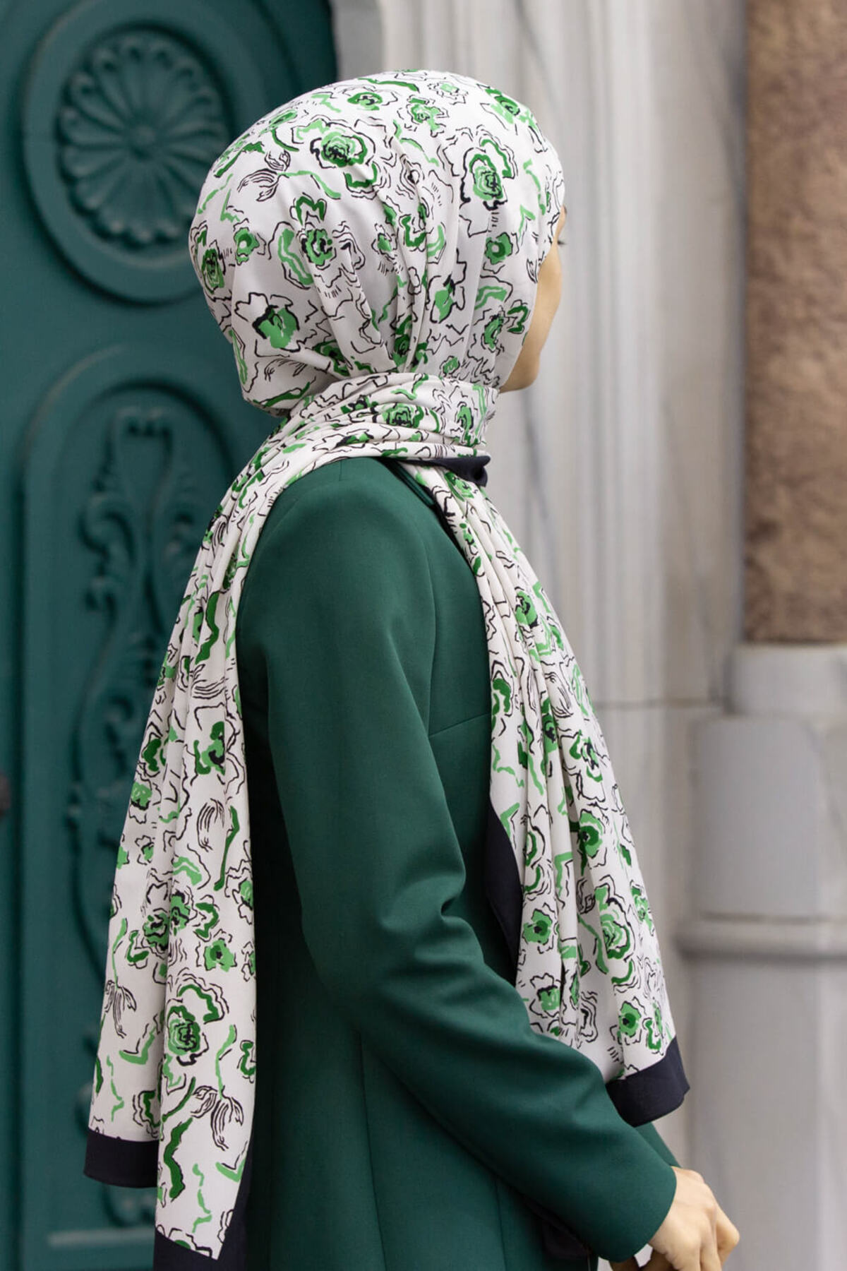 Kadın Lüks Medine Ipeği Şal Zümrüt Yeşili-bej Kadın Lüks Medine Ipeği Şal Zümrüt Yeşili-bej DGN50847 75 x 190
