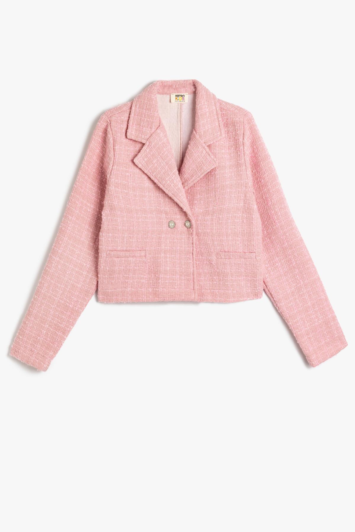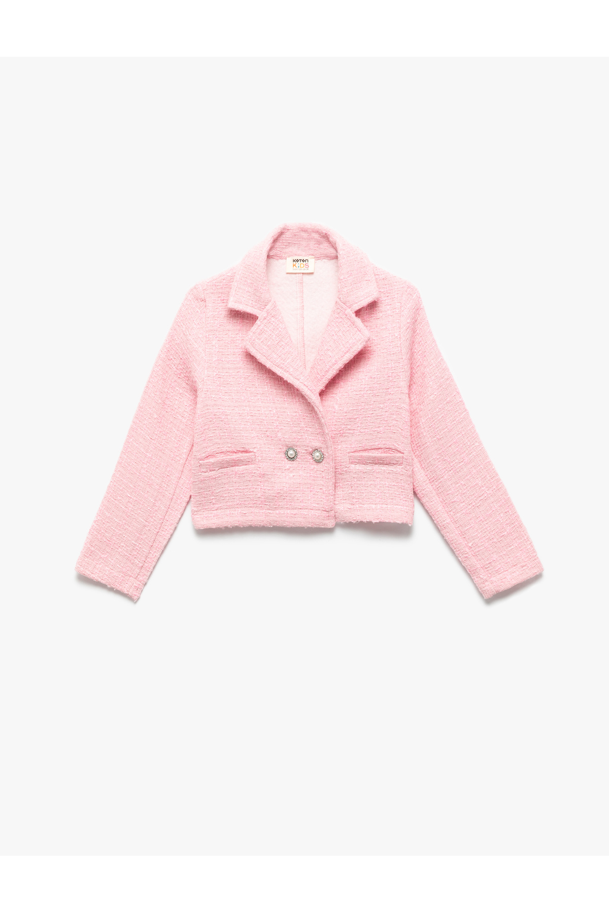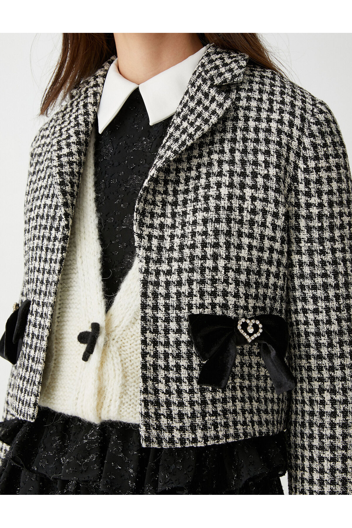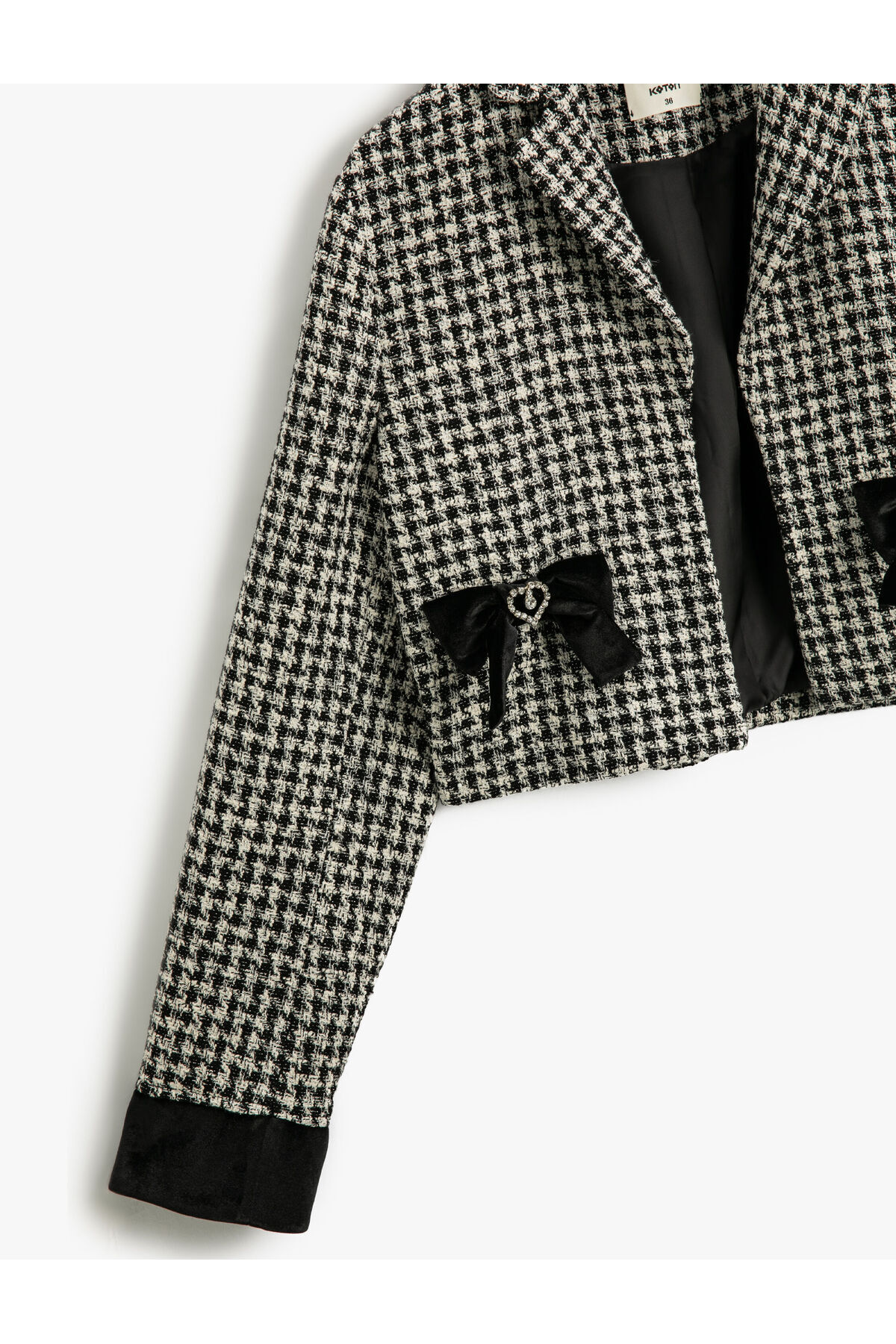 Fiyonklu Taş Detaylı Crop Tüvit Ceket Fiyonklu Taş Detaylı Crop Tüvit Ceket 3WAK50066PW 42