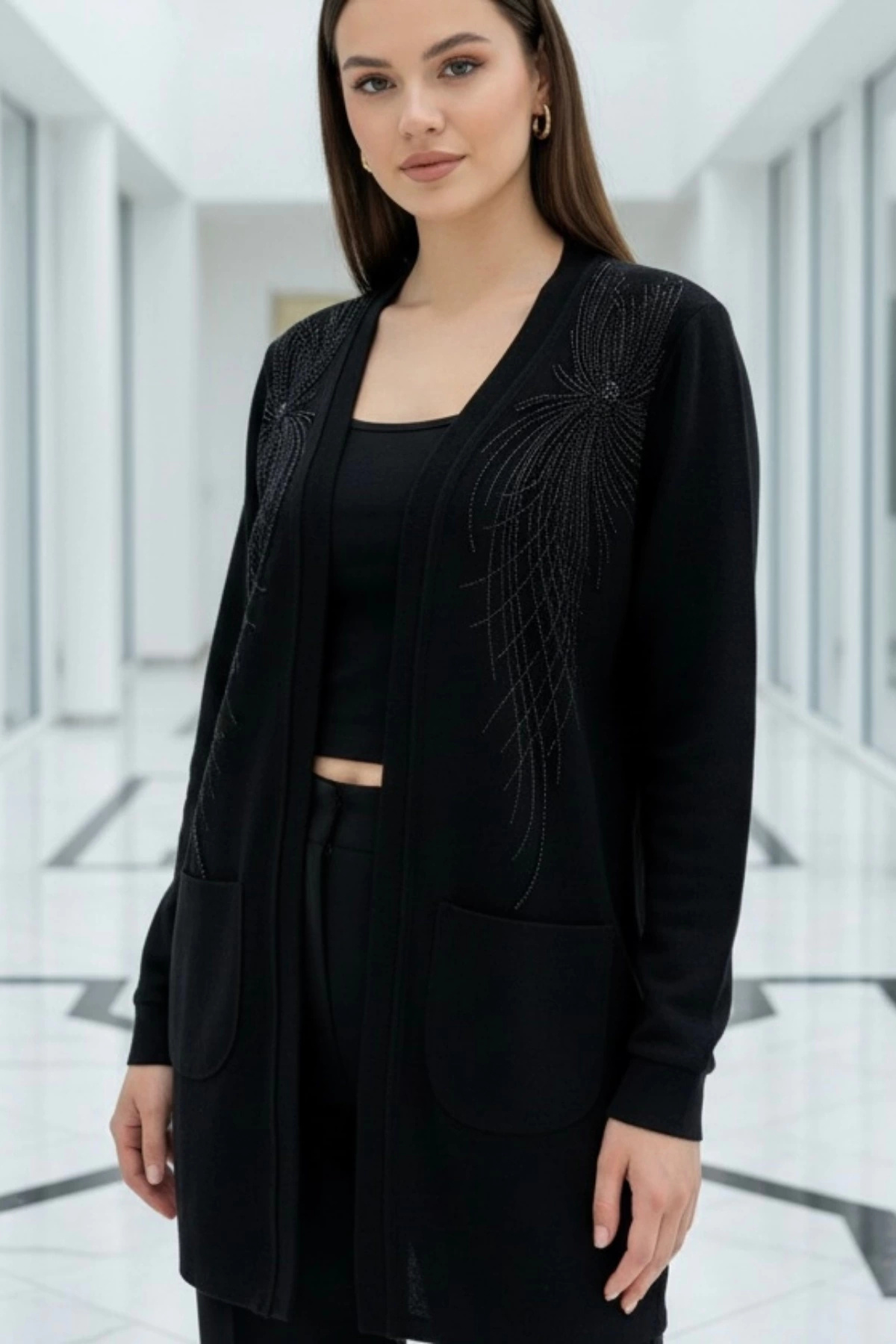 Kadın Siyah İnci Taş Serpme Nakışlı Selanik Kumaş Cepli Ceket Kadın Siyah İnci Taş Serpme Nakışlı Selanik Kumaş Cepli Ceket 3093 40/42
