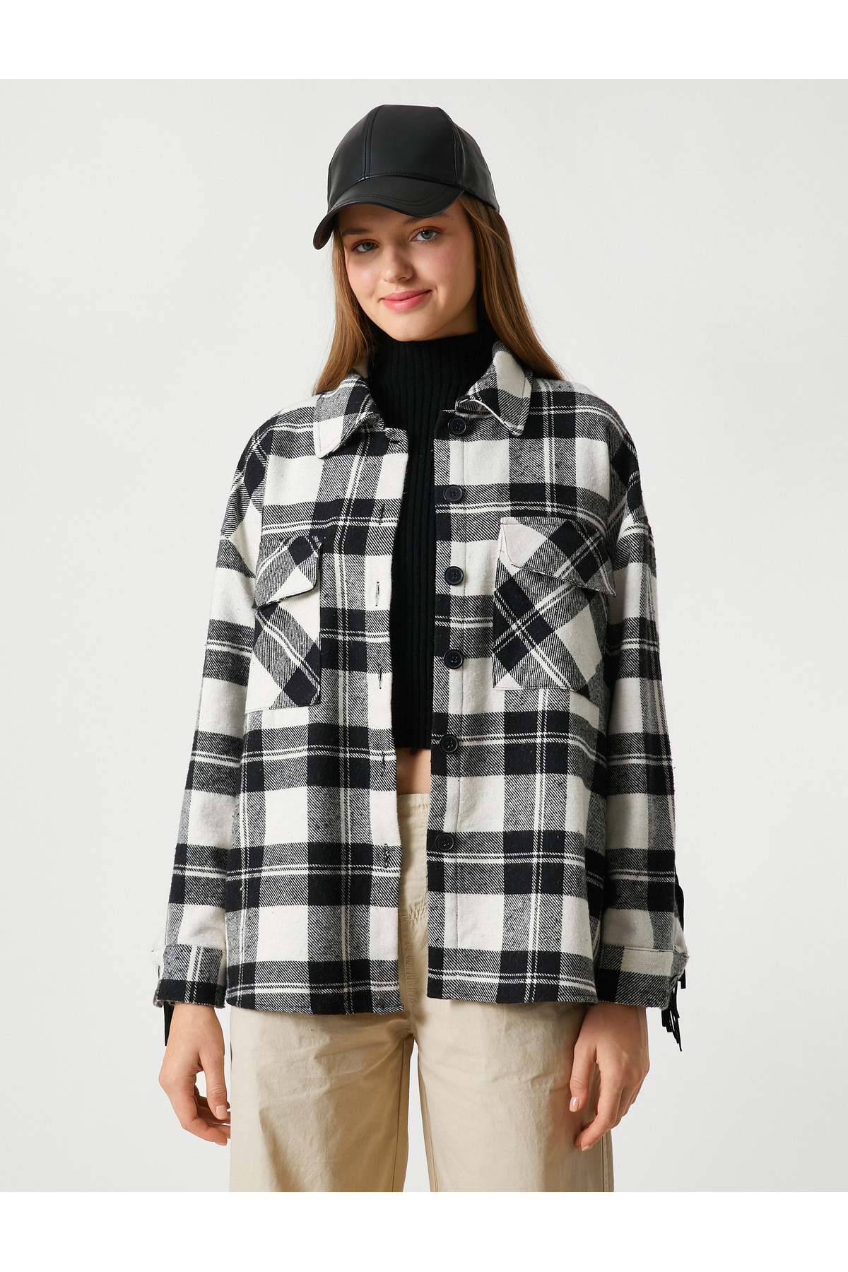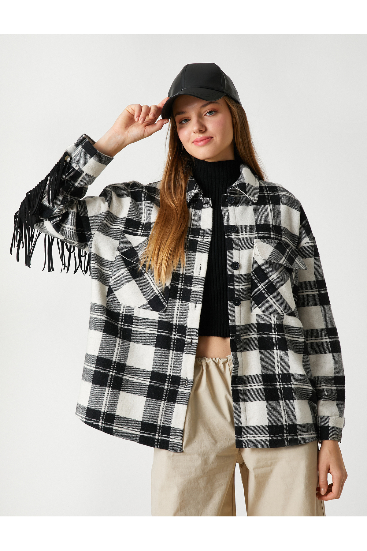 Oduncu Gömlek Ceket Püskül Detaylı Cepli Düğmeli Oduncu Gömlek Ceket Püskül Detaylı Cepli Düğmeli 3WAL20235IW 42