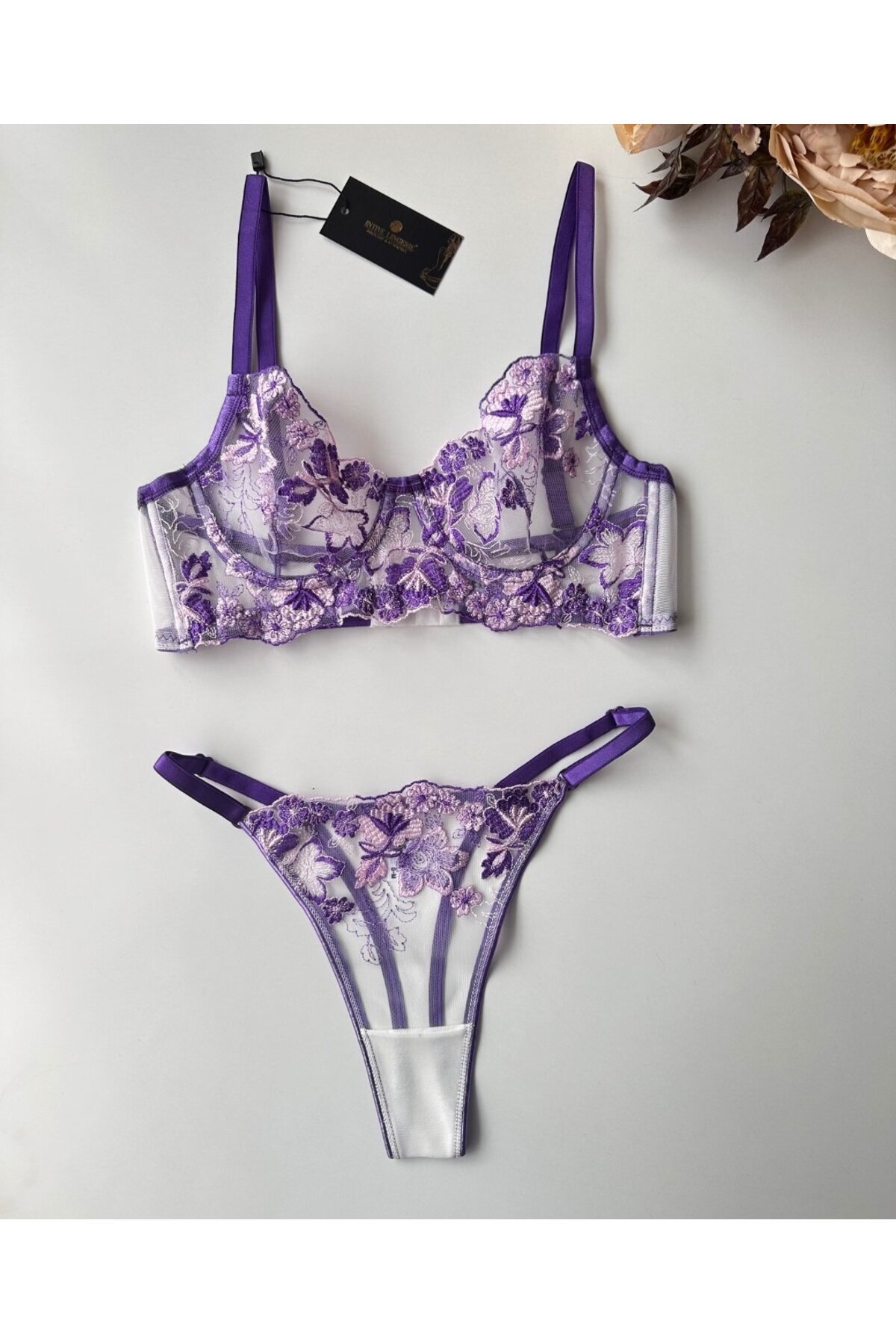 Gloria Mürdüm/koyu Mor Çiçekli Balenli Desenli Tasarım Sütyen Tanga Takım Gloria Mürdüm/koyu Mor Çiçekli Balenli Desenli Tasarım Sütyen Tanga Takım INTVGLORIA 85