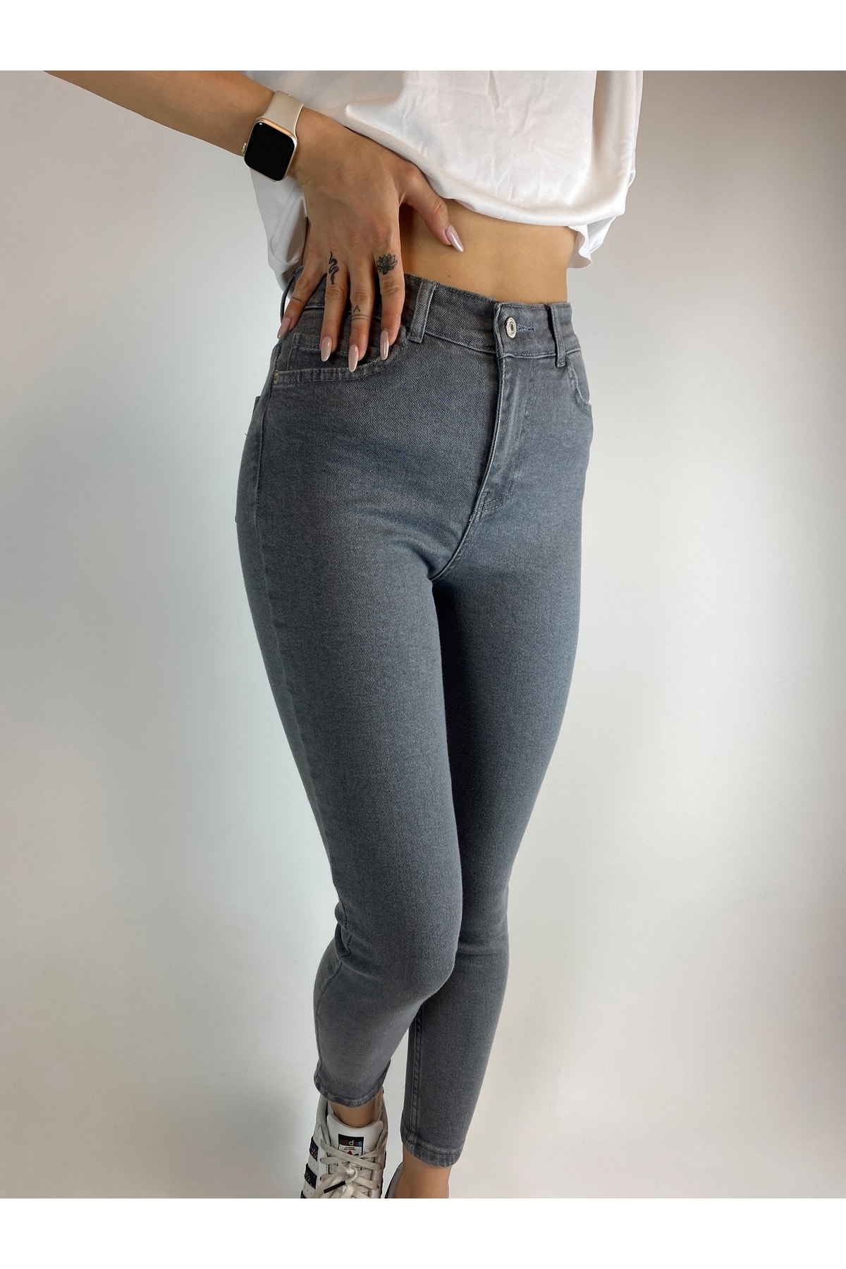 Gri Skinny Dar Paça Yüksek Bel Esnek Jean Gri Skinny Dar Paça Yüksek Bel Esnek Jean Bva5000 33