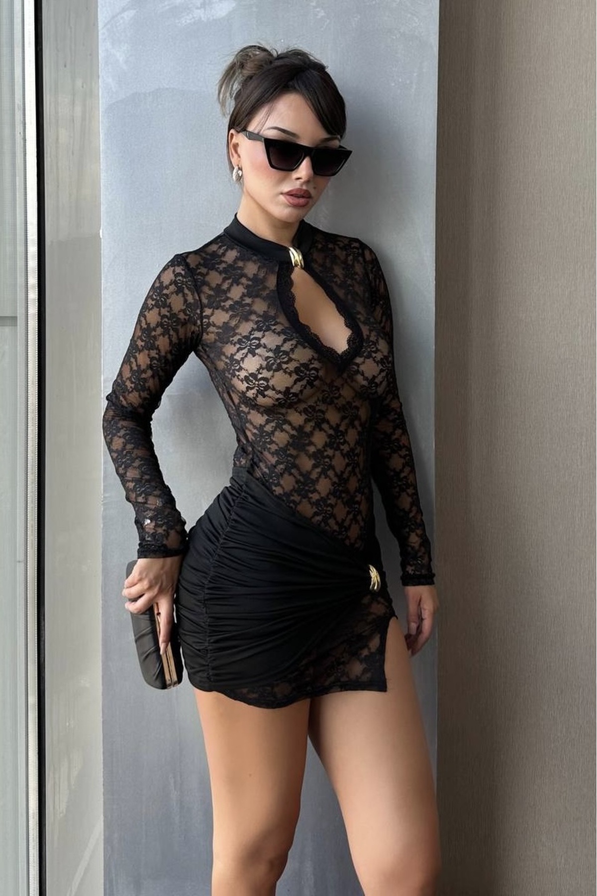 Kadın Sırt Bağlamalı Boğazlı Mini Gece Elbisesi Kadın Sırt Bağlamalı Boğazlı Mini Gece Elbisesi 3593 L