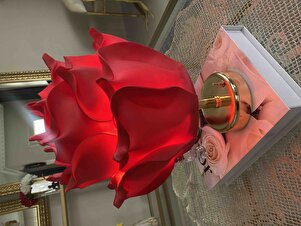 Kırmızı Eva Gül Tasarım Kablosuz Masa Lambası - Alt Eskitme Gold Kırmızı Eva Gül Tasarım Kablosuz Masa Lambası - Alt Eskitme Gold M190 تک سایز