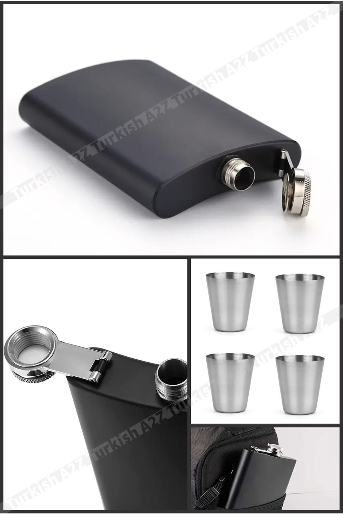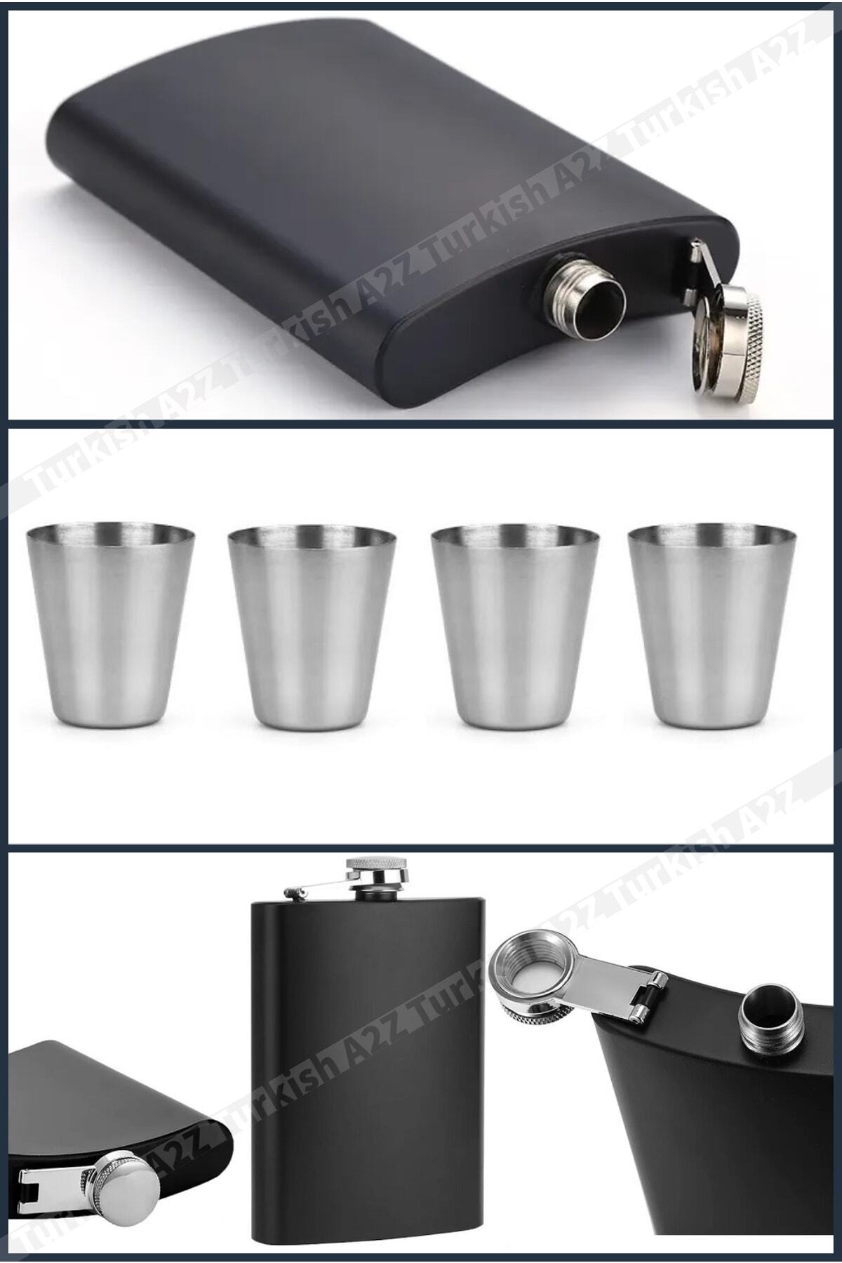 (6oz=177ml) Cep Matarası Kamp Içki Likör Viski Konyak Kanyak Alkol Şişesi + 4 Adet Metal Shot Bardak (6oz=177ml) Cep Matarası Kamp Içki Likör Viski Konyak Kanyak Alkol Şişesi + 4 Adet Metal Shot Bardak 6OZ+4SHOT تک سایز