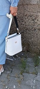 Kadın Beyaz Askılı Omuz Çantası Kadın Beyaz Askılı Omuz Çantası MB000477 تک سایز
