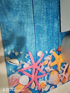Mavi Zemin Deniz Kabukları Desenli Dijital Baskılı Halı Mavi Zemin Deniz Kabukları Desenli Dijital Baskılı Halı MRC2318 180 x 180