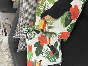 Tropikal Palmiye Yapraklar Üzerine Tukan Kuş Motifli 4'lü Kırlent Kılıfı Seti Tropikal Palmiye Yapraklar Üzerine Tukan Kuş Motifli 4'lü Kırlent Kılıfı Seti 6085v6155v6223v6258 تک سایز