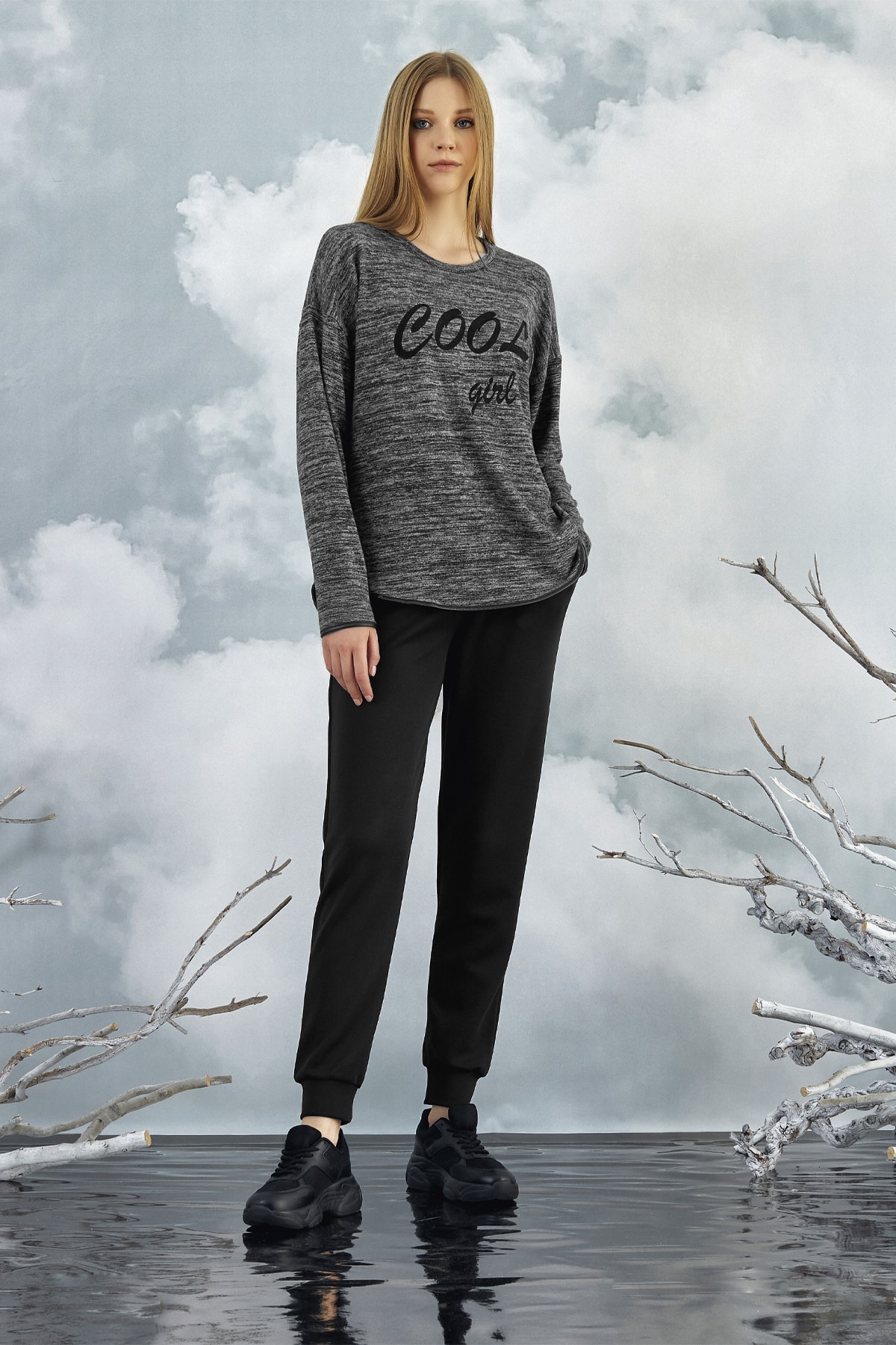 Kadın Beyaz Baskılı Pantolon Takım Kadın Beyaz Baskılı Pantolon Takım 20329 XL
