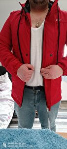 Kırmızı Su Geçirmez Kapüşonlu Erkek Mont Kırmızı Su Geçirmez Kapüşonlu Erkek Mont DPLN08 L